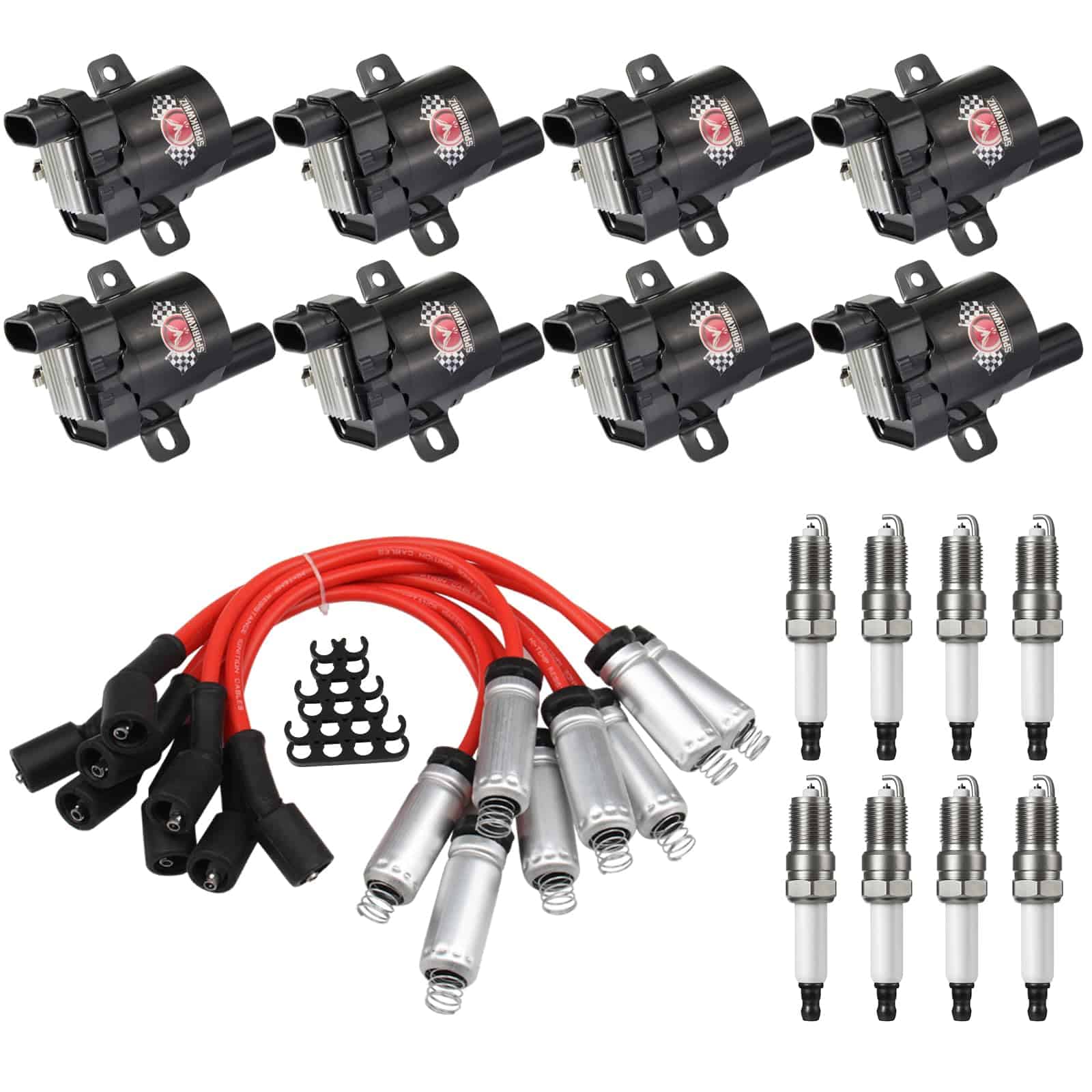 2. Incluye: Este kit proporciona 8 bobinas de encendido UF262 + 8 bujías de iridio + 8 cables de bujía de 8mm + 8 separadores de cables de bujía. Se puede instalar tan pronto como lo recibas, no se necesitan otros accesorios.