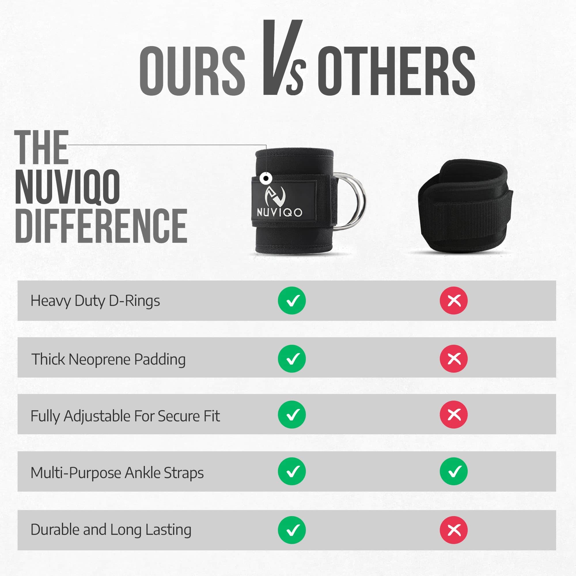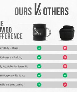 4. ¡CORREAS PARA TOBILLO QUE IMPONEN! ¡Dile adiós a las correas endebles! Nuestras correas de neopreno de alta densidad Premium con anillos en D de acero inoxidable están hechas para resistir a la competencia. ¡Sin deslizamientos, roturas ni estiramientos, solo pura y segura comodidad en cada día de piernas, sentadillas y entrenamiento intenso! ¡Prepárate para triunfar!