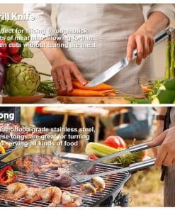 3. TODO EN UN MISMO PAQUETE – Todos los gadgets de parrilla vienen en un estuche negro que protegerá y mantendrá tus utensilios muy bien. Es portátil y fácil de llevar cuando estás de viaje, acampando o de excursión. Este es un set perfectamente adecuado, sin productos innecesarios no utilizados. Tamaño perfecto para picnic y fácil de guardar en autocaravana o cocina.