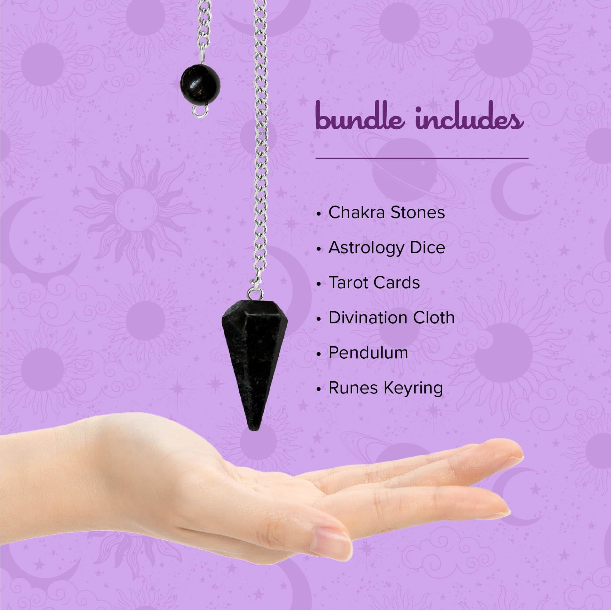 Curate tu viaje espiritual con el Set de Adivinación Kalan. Completo con una baraja de tarot, piedras de chakra, dados de astrología, paño de adivinación, péndulo de piedras preciosas y llavero de runas, este kit es perfecto para todos los individuos espiritualmente inclinados, tanto principiantes como expertos. Navega por lo desconocido, equilibra tus energías y alcanza la paz interior con nuestro set diseñado para elevar tu experiencia y fomentar el bienestar en todas las áreas de la vida.