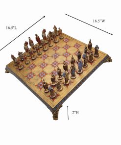 El tablero mide 16.5 x 16.5 pulgadas, lo que lo convierte en un tamaño perfecto para su uso en diferentes entornos. Añade este maravilloso set de ajedrez a tu colección o regálalo a alguien especial para destacar su amor por el ajedrez y la calidad artesanal.