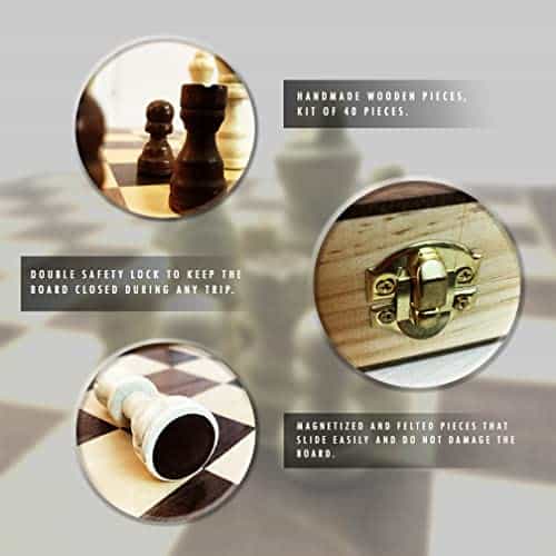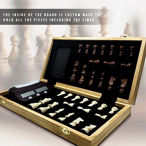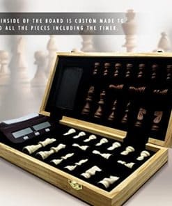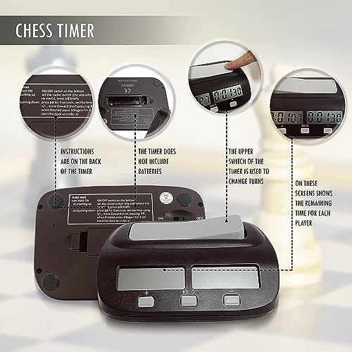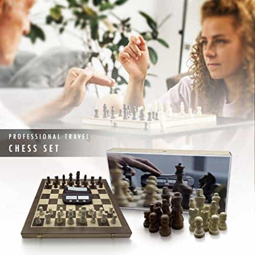 Set de ajedrez de viaje con reloj de la marca DOJA Barcelona. Incluye tablero de ajedrez magnético, piezas de madera y cronómetro digital de torneo. Tablero de ajedrez portátil profesional de madera para niños y adultos, ideal para partidas en cualquier lugar. ¡Hazte con este tablero de ajedrez con reloj y disfruta de horas de diversión estratégica!