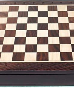 1. Tablero de ajedrez de madera de rosa y arce | Tamaño del tablero (L x A) – 7.5″ x 7.5″ (19 cm x 19 cm) | Tamaño del cuadrado del tablero – 0.75″ (19 mm).
