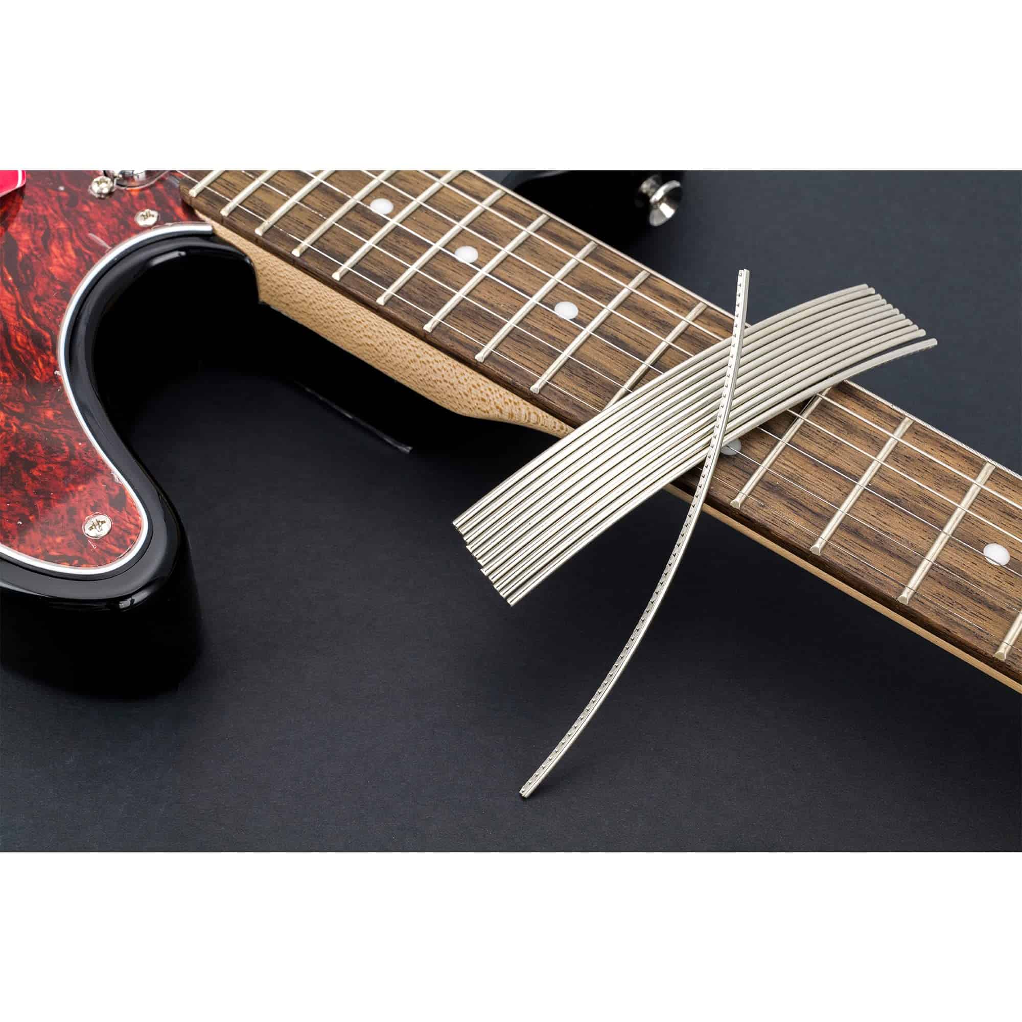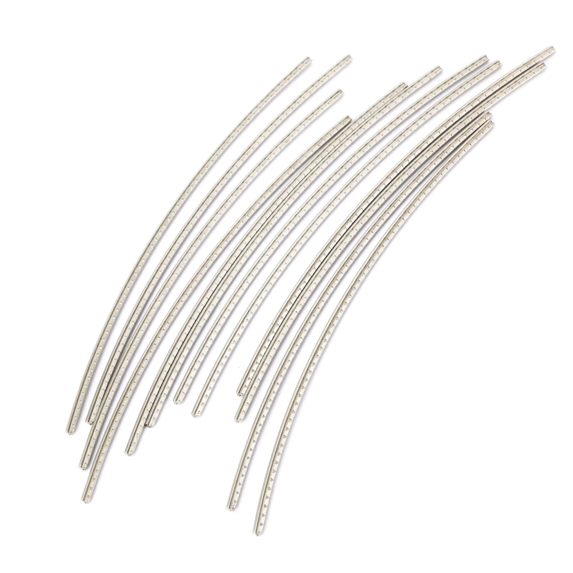 4. Empaquetado y ligeramente curvado. Cada traste mide 13cm(5.118 pulgadas) de largo, 12 piezas/conjunto, totalmente 156cm(5.1 pies) de largo, suficiente para cualquier guitarra estándar.