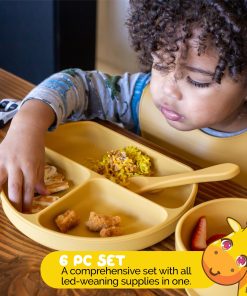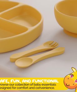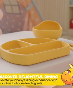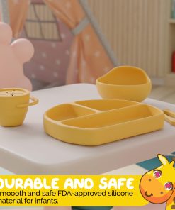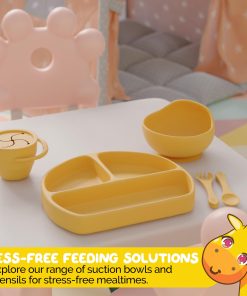 Set de alimentación de silicona por Muqee Peeko en amarillo
