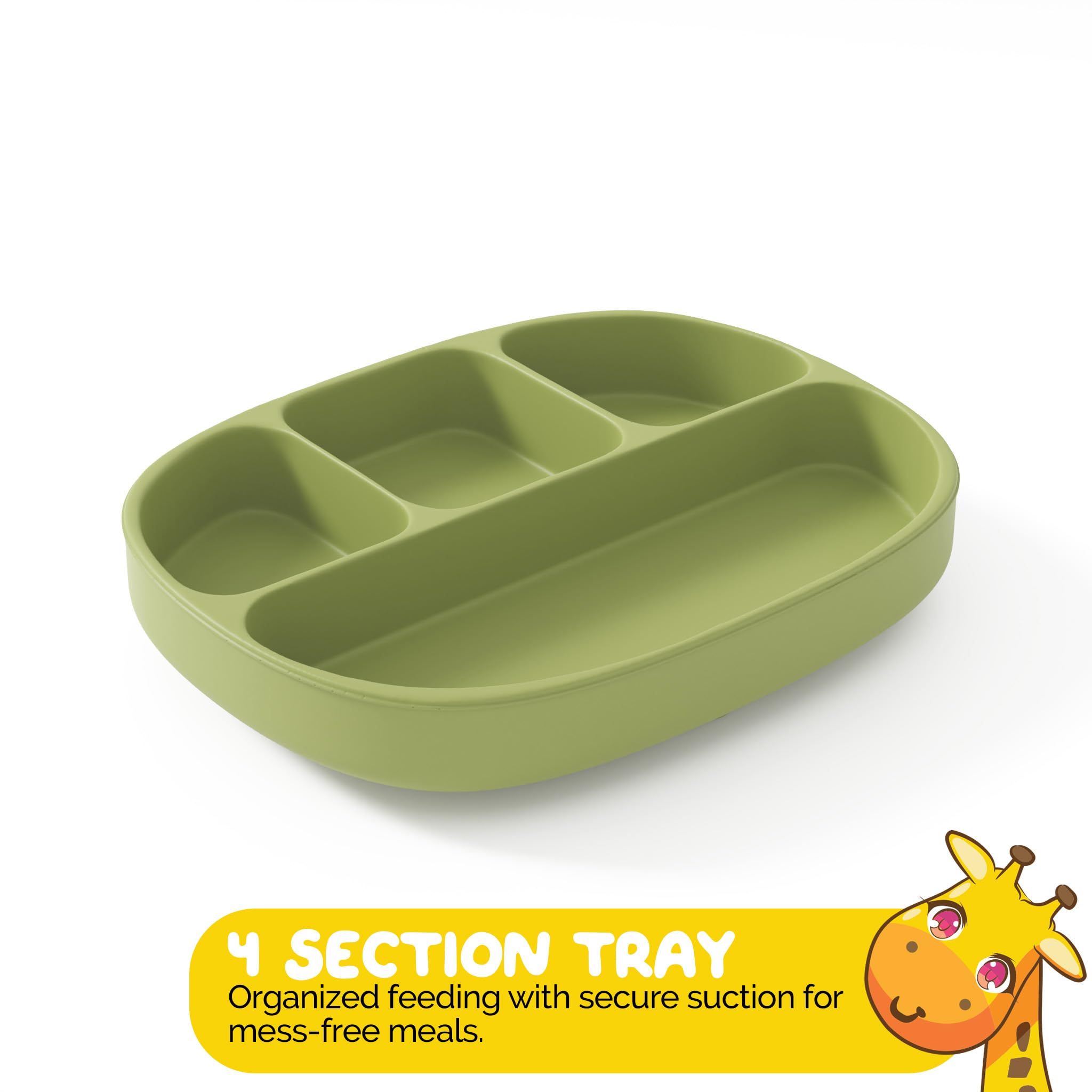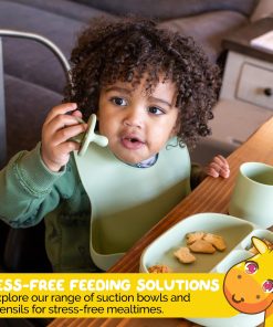 2. Organización Conveniente: La Bandeja de 3 Secciones ayuda a separar diferentes alimentos, mientras que el Babero mantiene a tu pequeño limpio durante las comidas.