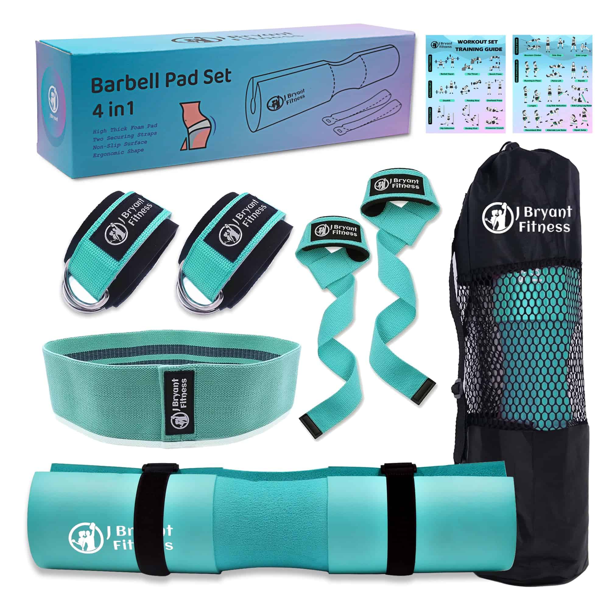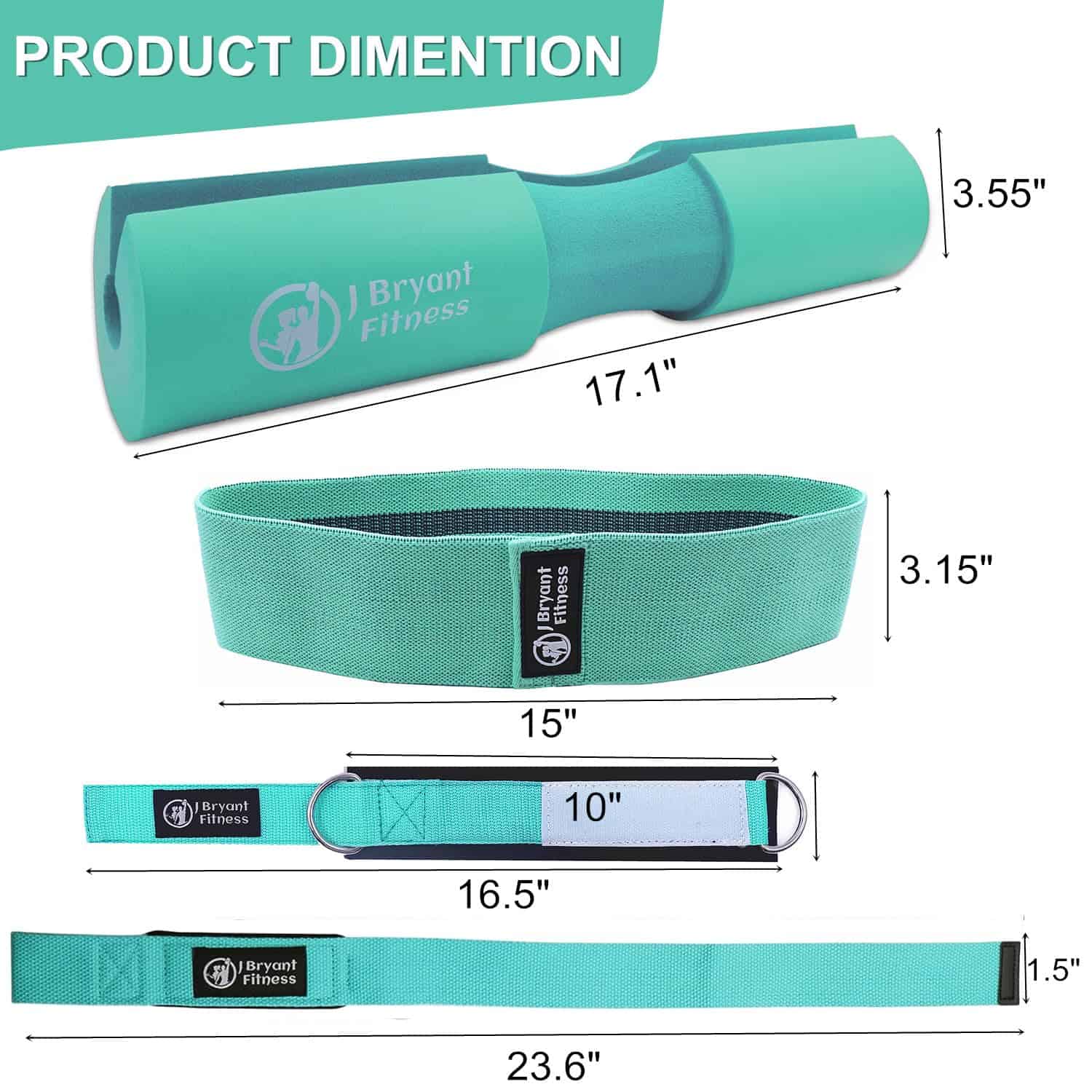 El set de almohadilla para barra incluye una almohadilla para sentadillas hecha de espuma suave y gruesa para mayor protección y durabilidad, correas de seguridad para mantenerla en su lugar en la barra. La banda de resistencia de cadera está hecha de tela de alta calidad que no se desliza ni se estira, perfecta para trabajar piernas, glúteos, caderas y brazos. Las correas de tobillo para gimnasio están diseñadas con acolchado de neopreno de 5mm y anillas dobles de acero inoxidable para mayor estabilidad y activación de glúteos. Las correas de levantamiento de pesas de 24″ te permiten hacer lazos extras alrededor de la barra para mejorar tu agarre. Úsalas en barras, mancuernas, discos y pesas rusas para maximizar tus ganancias en el gimnasio con una fuerza de agarre mejorada.
