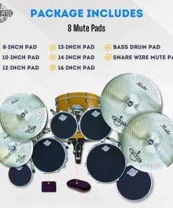 Este set de almohadillas de silenciador de batería Rhythm Bytes ofrece una experiencia de práctica silenciosa sin sacrificar el rebote o la respuesta de las baquetas. Reducen eficazmente el ruido sin perder la sensación real de tocar la batería, permitiéndote practicar en cualquier lugar sin molestar a la familia o a los vecinos. Además, la almohadilla para tambor bajo reduce la profundidad del sonido sin sacrificar la sensación, y la almohadilla para alambre de caja ayuda a reducir el zumbido manteniendo la sensación natural de la caja. Estas almohadillas duraderas están diseñadas para resistir sesiones de práctica intensas y son fáciles de instalar y quitar, lo que las convierte en la opción perfecta para bateristas de todos los niveles. ¡Haz posible la práctica silenciosa en casa, en apartamentos o en cualquier espacio donde el volumen deba mantenerse bajo con estas almohadillas de silenciador de batería de alta calidad!