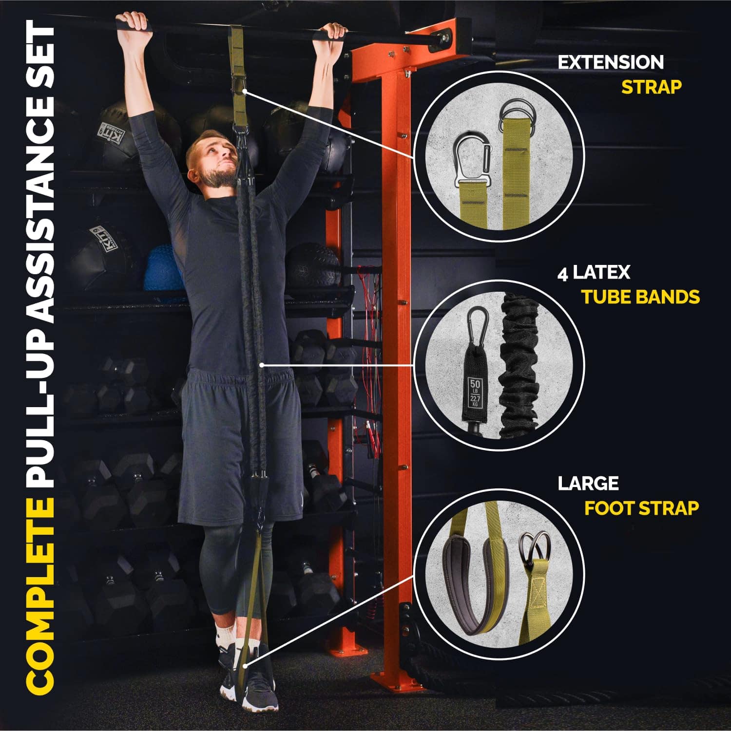 Las bandas de ayuda para dominadas son un excelente recurso para mejorar tu entrenamiento de dominadas. Con 4 bandas de resistencia resistente, cada una ofreciendo 50 libras de tensión, puedes ajustar la asistencia de 50 a 200 libras para adaptarte a tu nivel de fuerza actual. Ya seas un principiante que necesita soporte adicional o un atleta avanzado que busca un desafío, estas bandas de resistencia versátiles son la solución ideal.