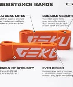 GEKU FIT 41″ Pull-Up Assistance Bands Elite Set, Heavy Duty Resistance Bands Set for Strength, Powerlifting, Entrenamiento de Levantamiento de Peso Muerto en Casa/Gimnasio. Las bandas de resistencia GEKU FIT están hechas de látex natural 100% sin olor químico. Es resistente al estiramiento, resistente a las rasgaduras, duradero y puede soportar una fuerza de tracción extrema. Diseñadas para la comodidad, nuestras bandas de entrenamiento son compactas y ligeras. Completa con un anclaje de puerta de ejercicio profesional, un póster de entrenamiento y una bolsa de almacenamiento, puedes configurar fácilmente tu espacio de entrenamiento en cualquier lugar en solo 60 segundos. Agregar resistencia y peso a tu entrenamiento con las bandas de ejercicio hace que el ejercicio sea más efectivo. Estas bandas de ejercicio son ideales para ayuda en dominadas, agregar resistencia a las flexiones, entrenamiento de velocidad, press de banca, sentadillas, press de hombros, etc.