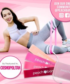 Set de Bandas de Resistencia Peach Bands para ejercicios de piernas y glúteos. Esculpe, levanta y tonifica tu trasero con las Peach Bands Resistance Bands. El accesorio perfecto para la activación de los glúteos y agregar resistencia a todos los ejercicios de piernas y glúteos. Hechas de látex 100%, las Peach Bands son ligeras, duraderas y fuertes. Cada set incluye 4 bandas de resistencia: desde Ligera (10-12 lbs), Media (15-20 lbs), Pesada (25-30 lbs), X-Pesada (30-35 lbs). Cada banda mide 12 pulgadas de largo por 2 pulgadas de ancho. La bolsa de transporte rosa hace que sea fácil llevarlas a todas partes. Ten un entrenamiento efectivo en casa, en el gimnasio o cuando viajes o estés fuera.