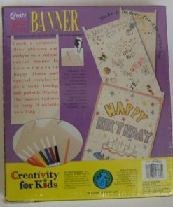 Set de Banderines para Crear tu Propio Diseño de Creativity For Kids. Este set incluye un Banderín de Tela Natural de tamaño 22 1/2″ x 40″ y Marcadores de Tela para que puedas personalizarlo a tu gusto. Es adecuado para personas de todas las edades, desde los 6 hasta los 96 años. ¡Deja volar tu creatividad y decora tu espacio con este divertido set de banners!