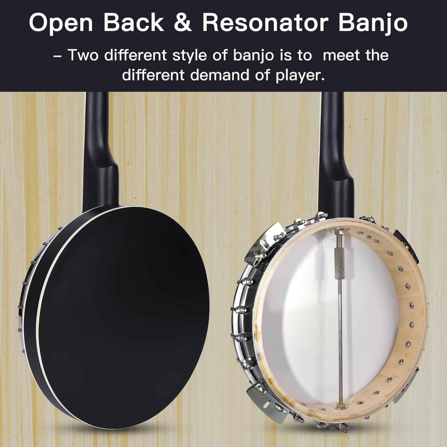 Set de Banjo de 5 Cuerdas Tamaño Completo con Cabezal de