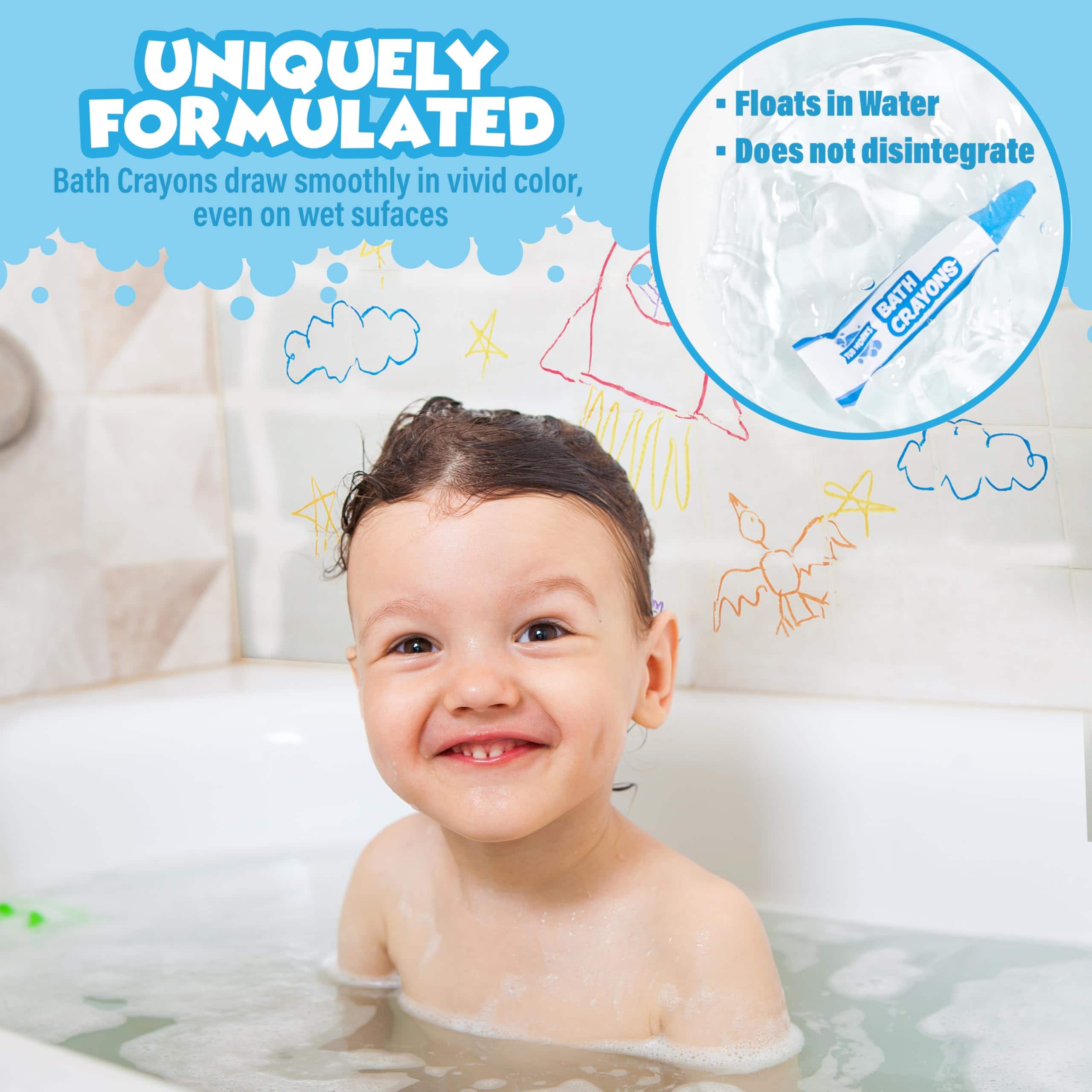 4. Crayones de Baño Smooth: Nuestros crayones de baño fáciles de agarrar para niños están formulados exclusivamente para dibujar suavemente, incluso en superficies húmedas de la bañera. Nuestra formulación única flota en el agua y no se desintegra.