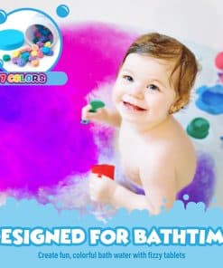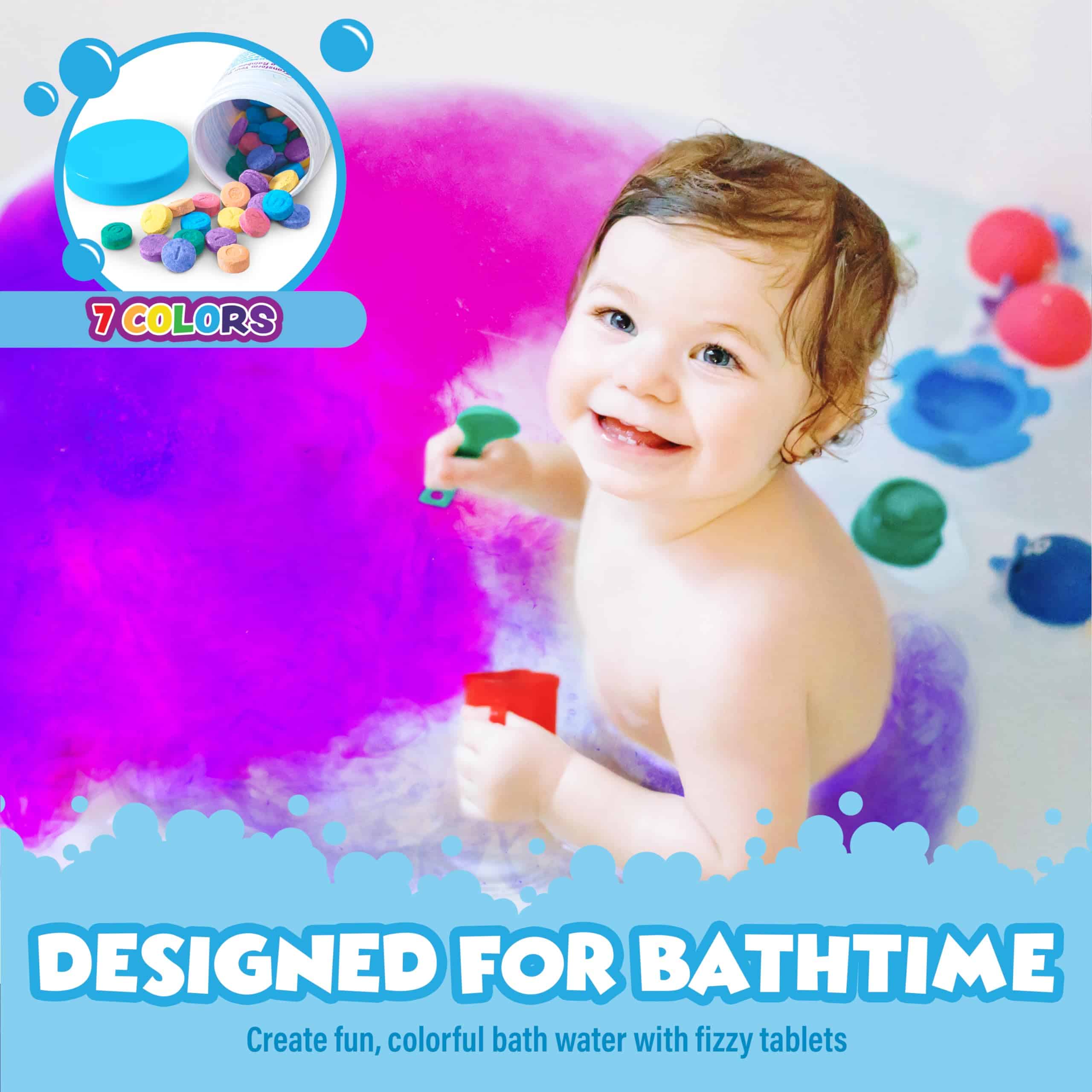 6. Tabletas de Colores para el Baño: Nuestra exclusiva mezcla de tabletas de agua para el baño incluye 7 colores audaces para crear agua de baño divertida y colorida. Observa cómo las gotas de baño efervescentes florecen y cambian de color el agua. Agrega más tabletas para mezclar y crear nuevos colores.