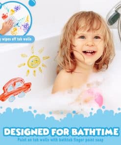 3. Jabón de Pintura Fingertip para la Bañera: Con 6 colores clásicos de pintura para el baño, los más pequeños pueden mezclar y crear nuevos colores de baño y hacer arte en el baño con estos jabones lavables especialmente diseñados para usar en las paredes de la bañera.