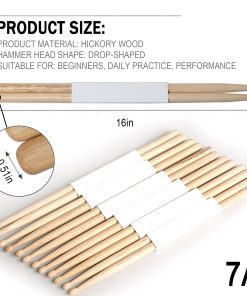 4. TAMAÑO ESTÁNDAR: Las baquetas están cuidadosamente elaboradas con un peso equilibrado y un agarre cómodo, cumpliendo con el estándar internacional 7A y brindando a los músicos una excelente experiencia de juego. Longitud: 16 pulgadas, Diámetro: 0.51 pulgadas.