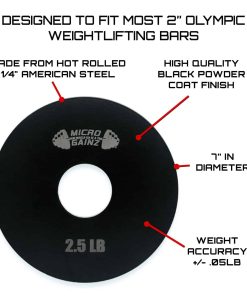 Hecho en EE.UU., el equipo de levantamiento de peso de precisión de Micro Gainz resuelve la necesidad de incrementos de peso más pequeños, ayudando a la progresión de la fuerza con soluciones duraderas y calibradas para los levantadores. ¡Con Micro Gainz, gane músculo 1LB a la vez!