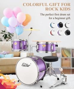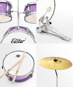 Eastar nunca te decepcionará. Elige Eastar y tendrás 12 meses de soporte de Garantía Limitada, por favor contáctanos si tienes algún problema, te responderemos lo antes posible. Especificaciones: Tamaño: 14 pulgadas Conjunto de 3 tambores Adecuado para edades de 3 a 6 años Color Púrpura Metálico Material del tambor: Álamo Patrón del tambor: Paisaje Material del platillo: Metal Mach Diez 0.8mm Bombo: 14″ x 10″ Tom montado: 8″ x 6″ Caja montada: 10″ x 5″ Platillo con brazo de platillo: 10″ Pedal de bombo: Electroplate Trono de batería ajustable con almohadilla redonda Dos baquetas de madera para niños Dos baquetas de madera 7A para adultos Tamaño del paquete: 49cm x 41cm x 35cm Peso: 10kg Paquete incluido: Bombo de 14″ x 10″ x 1 Tom montado de 8″ x 6″ (con brazo de tambor) x 1 Caja montada de 10″ x 5″ (con brazo de tambor) x 1 Platillo de 10″ con brazo de platillo x 1 Pedal de bombo con cromado x 1 Trono de batería ajustable con almohadilla redonda x 1 Baquetas de madera para niños x 2 Baquetas de madera 7A para adultos x 2 Instrucciones de montaje fáciles de leer (se requiere ensamblaje) x 1