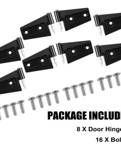 Set de Bisagras de Puerta Compatible con Jeep Wrangler JK 2007-2018 Exterior 8PCS Kit de Bisagras de Puerta Montaje en Puertas 4 Puertas (Bisagra de Puerta Exterior) Bisagra de puerta compatible con jeep wrangler jk 2007 2008 2009 2010 2011 2012 2013 2014 2015 2016 2017 2018. Esta bisagra de puerta es adecuada para reemplazar y retrofit las puertas. Fácil y sencilla de instalar, no se requiere perforación adicional. Hecho de material de acero de alta calidad con larga vida útil. No se oxida fácilmente. Paquete incluye: 8 bisagras de puerta + 16 tornillos. Instalación de las bisagras: Ajuste la bisagra en la puerta y el marco de la puerta y asegúrelos con tornillos. No apriete demasiado para evitar daños en la puerta o el ajuste de la bisagra. Garantía: Las bisagras de puerta wrangler jk de iKer vienen con una garantía. Si tiene alguna pregunta, contáctenos y resolveremos sus dudas a la brevedad. Por favor, verifique el modelo correspondiente cuidadosamente antes de comprar.