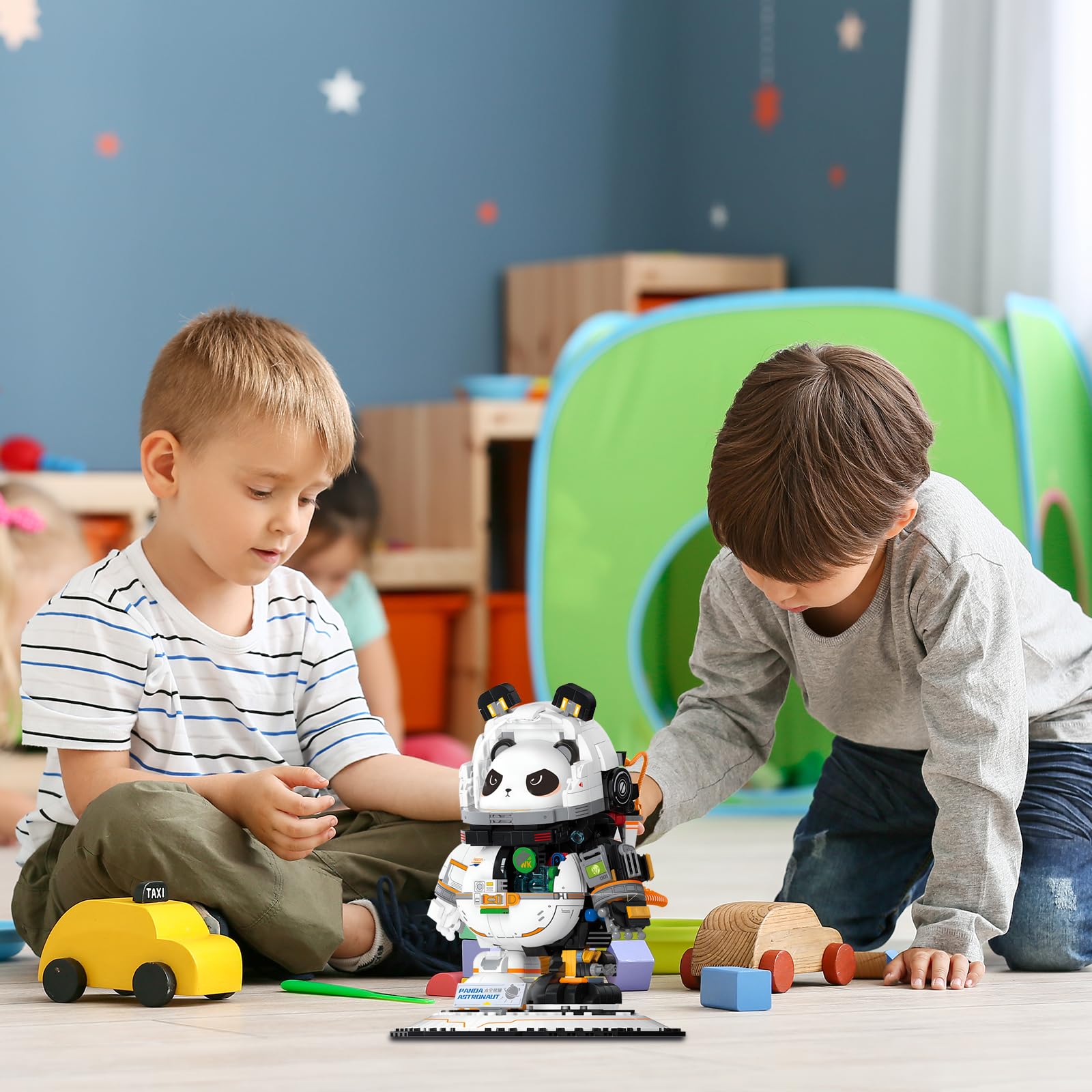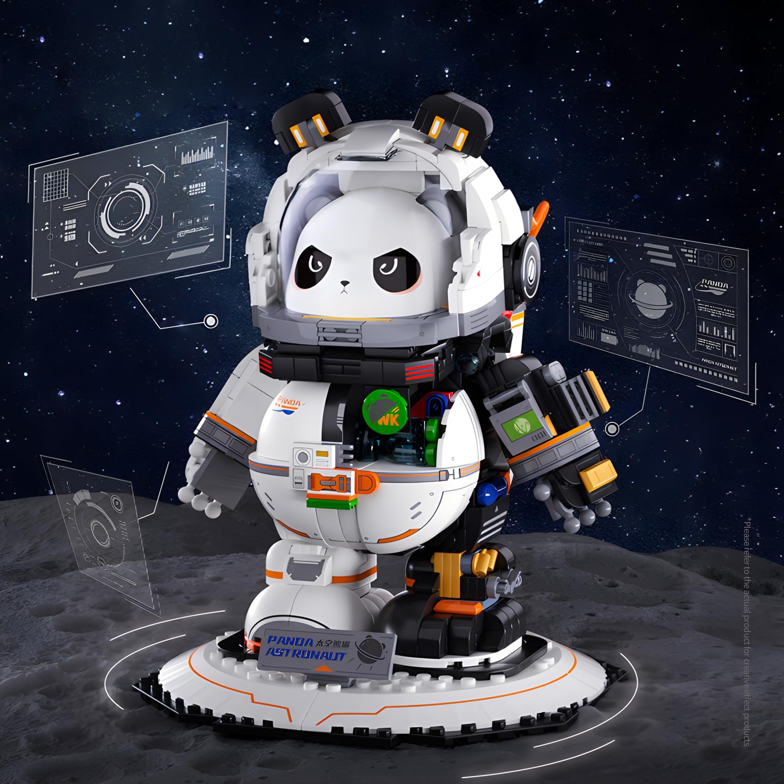 1. Súper conjunto de bloques de construcción de astronauta con articulaciones móviles: Combina el panda, astronautas, dos imágenes clásicas populares, forma mitad mecha llena de sentido de tecnología, las articulaciones de la mano pueden moverse, pueden conformar libremente, con una placa de identificación única y una base, diferente de los bloques de panda tradicionales, modelado lindo y genial junto con un sentido de tecnología, más atractivo.