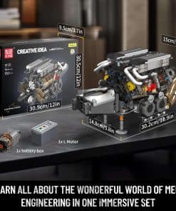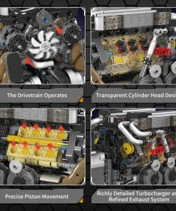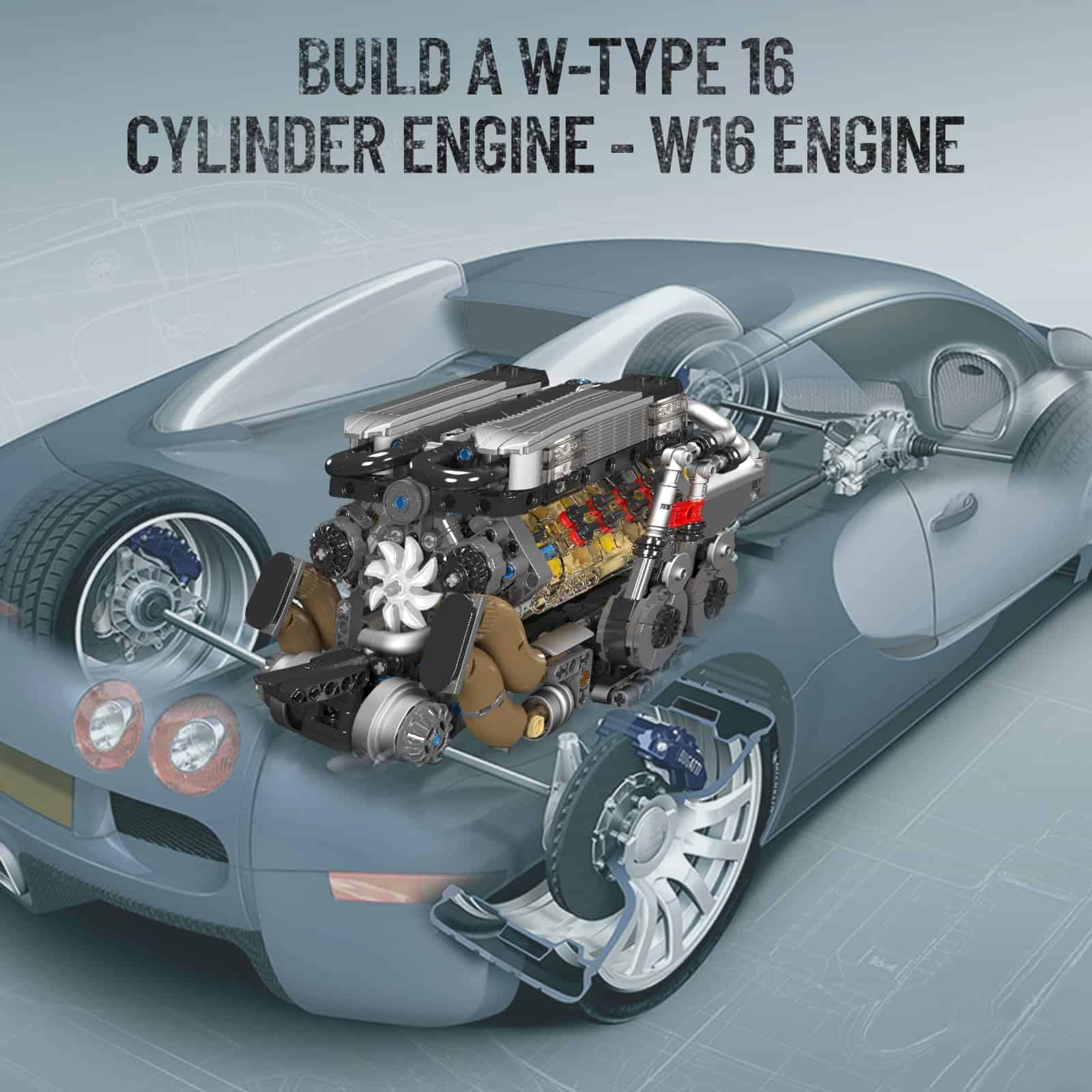 1. W-TYPE 16 CYLINDER ENGINE SCALE MODEL Este kit de bloques de construcción compatible con bloques de construcción convencionales, basado en el prototipo del Motor W16, consta de más de 952 piezas. – Nota: Si encuentra un artículo faltante en el paquete, por favor contáctenos por correo electrónico, le enviaremos inmediatamente el artículo faltante de forma gratuita.