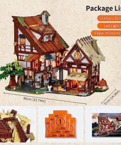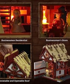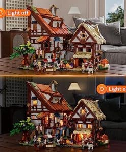 Vuelve a la bulliciosa vida del mercado medieval con este set de bloques de construcción Funwhole Medieval-Market Lighting. Este modelo de construcción te llevará de vuelta en el tiempo a un mercado medieval vibrante, con dos edificios completos que cuentan con una variedad de espacios funcionales, incluyendo una armería, una panadería, una cámara del consejo municipal, una residencia privada, y un desván para almacenar bienes. Además, las características detalladas de los edificios siguen la historia real, con diferentes diseños de techo y pared que representan los materiales de construcción de la época. Los edificios se pueden abrir para revelar un interior detallado que incluye chimeneas, velas de cera, antorchas y cuencos de velas. El diseño de iluminación auténtico simula el cálido brillo de las velas dentro de los edificios, creando una atmósfera acogedora y realista. Este set de 2614 piezas es una excelente colección para los amantes del estilo medieval, con libros de instrucciones claros que guían paso a paso el montaje y la instalación de las luces. ¡Construye tu propia escena medieval con este detallado modelo de mercado!
