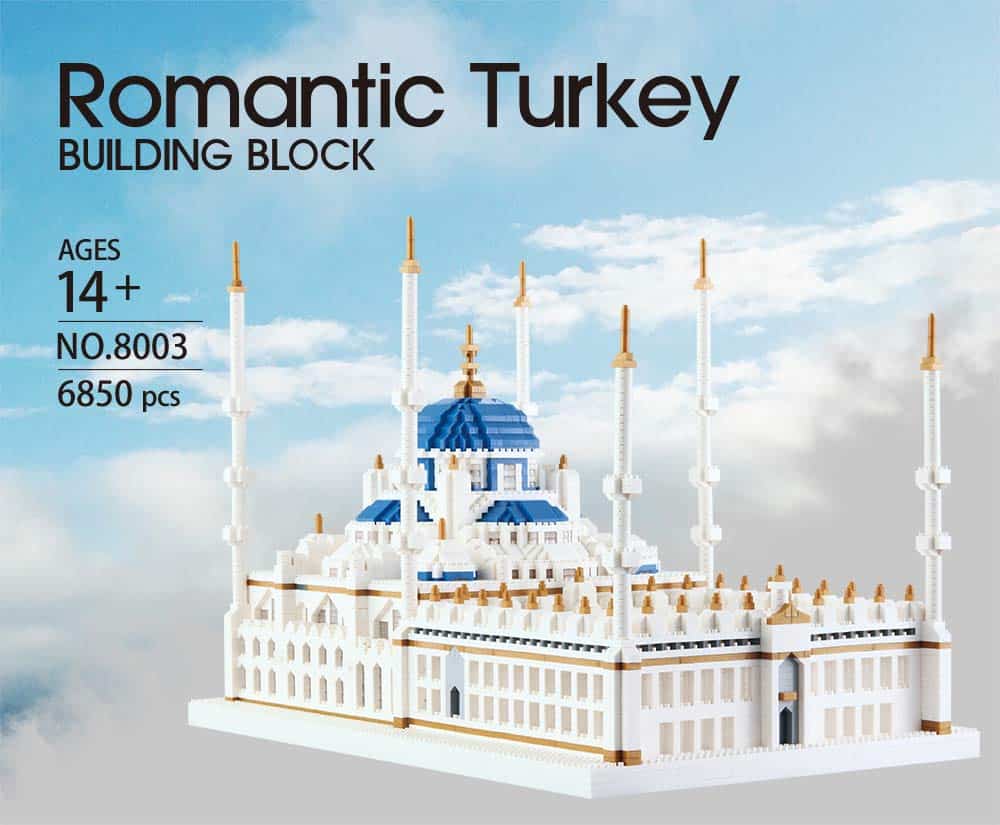 La Mezquita Azul es un edificio de estilo bizantino (Imperio Romano Oriental, con la cultura griega como cultura principal) con cúpulas rodeadas por seis minaretes, simbolizando las seis creencias del Islam, y es una de las diez maravillas del mundo.