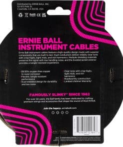 Los cables de instrumento trenzados de Ernie Ball son la elección perfecta para músicos que buscan un rendimiento y durabilidad fiables. Estos cables de 18 pies cuentan con una cubierta exterior trenzada resistente a enredos y conductores duales con múltiples materiales de blindaje, que ofrecen un tono claro con agudos nítidos, medios ajustados, y armónicos ricos mientras se minimiza el ruido de manipulación. El diseño recto/ángulo ofrece versatilidad para varias configuraciones. Ya sea en el escenario o en el estudio, estos cables proporcionan una conexión confiable para tu guitarra eléctrica o bajo.