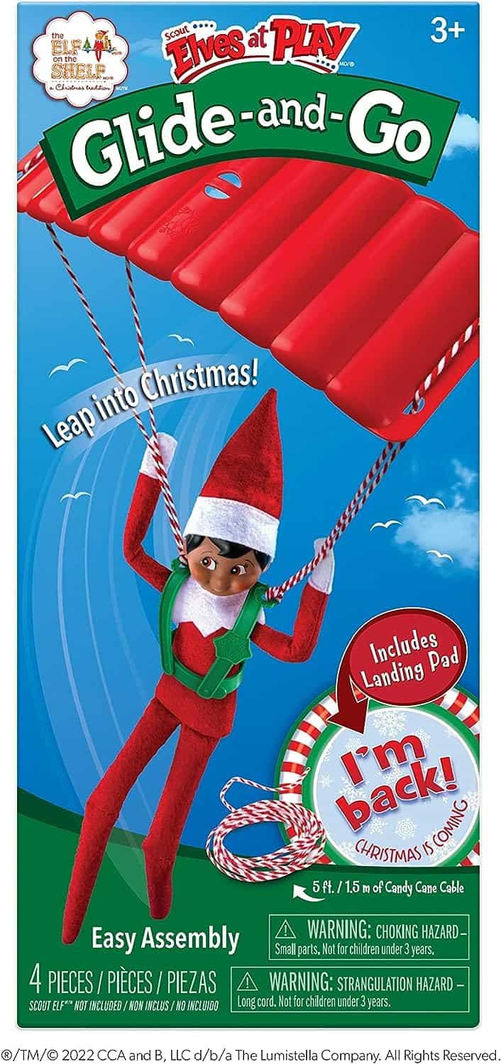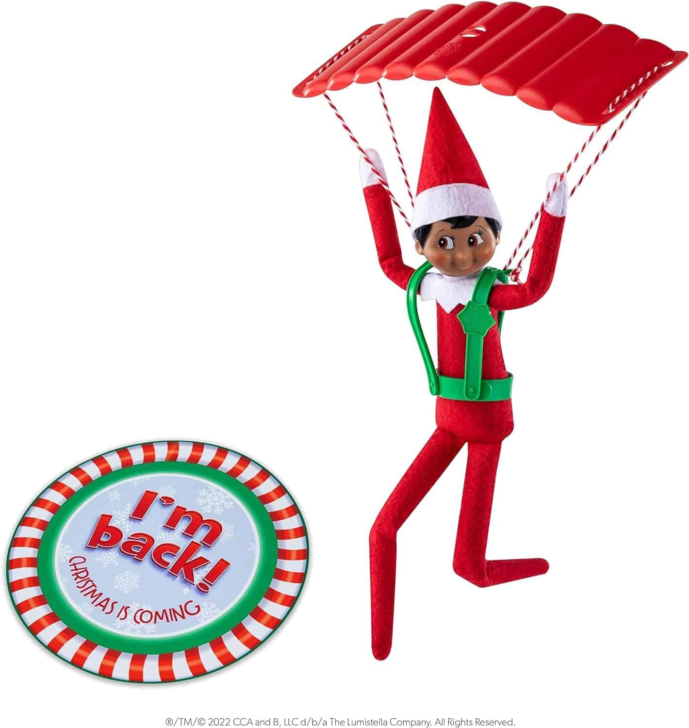 2. SCOUT ELVES AT PLAY: ¡Salta hacia la Navidad con este set de paracaídas perfecto para llegadas o simplemente para diversión durante toda la temporada! ¿A dónde volará tu Scout Elf a continuación? ¡Este set de paracaídas diseñado específicamente para El Elf on the Shelf permitirá que tu Scout Elf vuele!