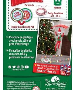 3. DESLIZANDO Y YENDO: ¡Tu Scout Elf seguramente hará una entrada memorable con este paracaídas fácil de usar y un cable de bastón de caramelo! El almohadilla de aterrizaje garantiza un aterrizaje perfecto cada vez.