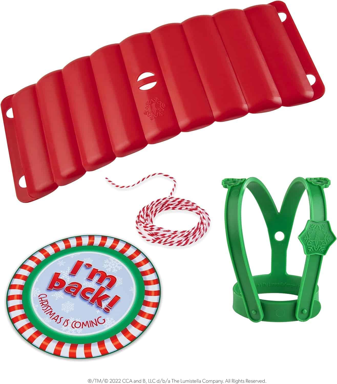 4. PRODUCTO INCLUYE: Elfa de ojos azules con tono claro, Libro Tradición Navideña, Scout Elves at Play – Paracaídas rojo de plástico, Cable de cuerda de bastón de caramelo de 5 pies, Arnes de plástico y Almohadilla de aterrizaje de 2 lados.