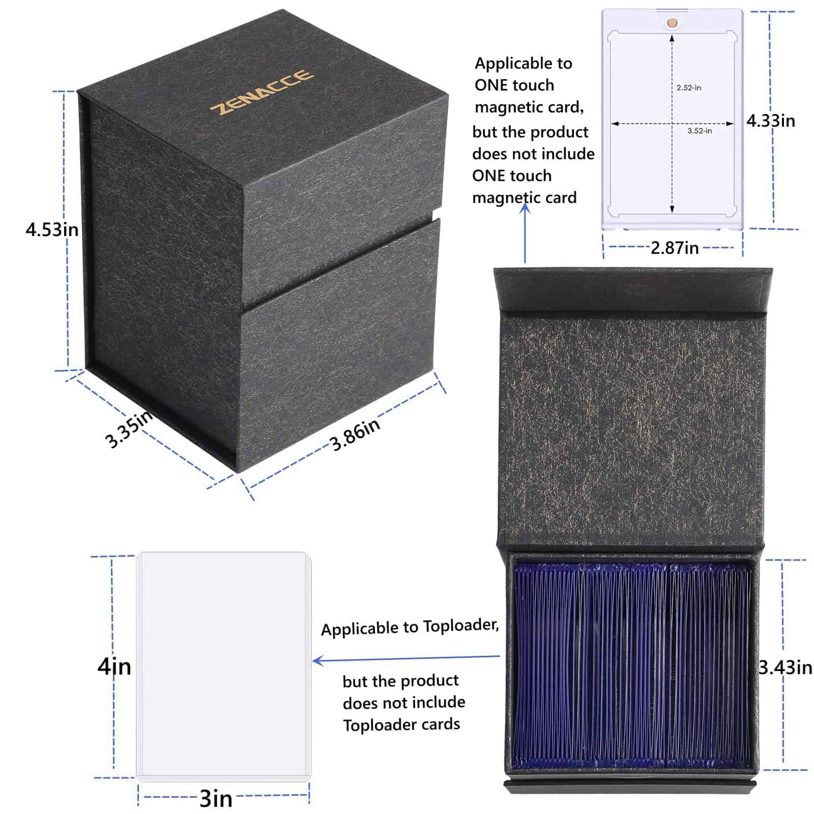 3. DISEÑO ESPECIAL: puede acomodar múltiples tarjetas. Tanto los toploaders de 3» x 4» como los soportes magnéticos de un toque pueden caber en la caja de carcasa dura.