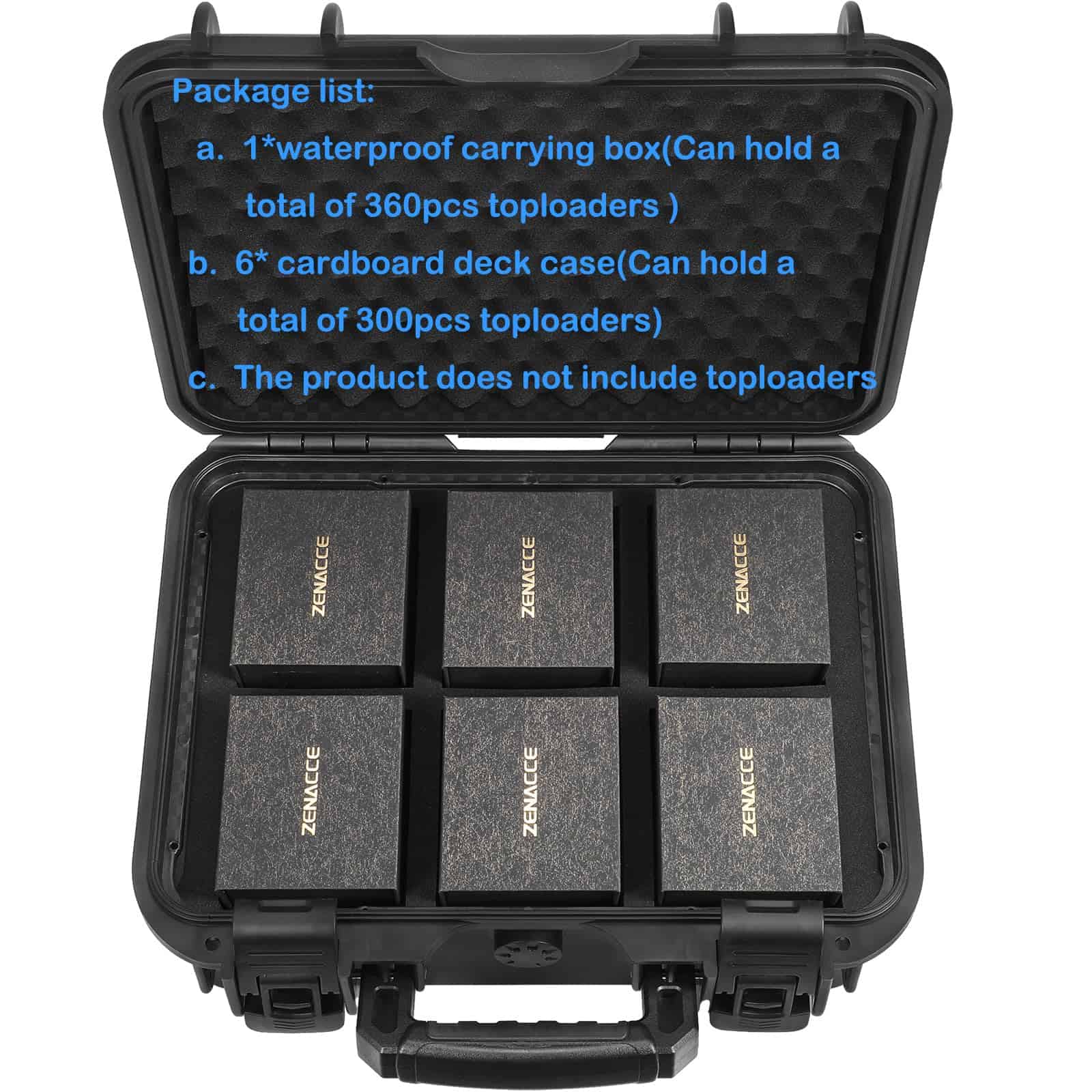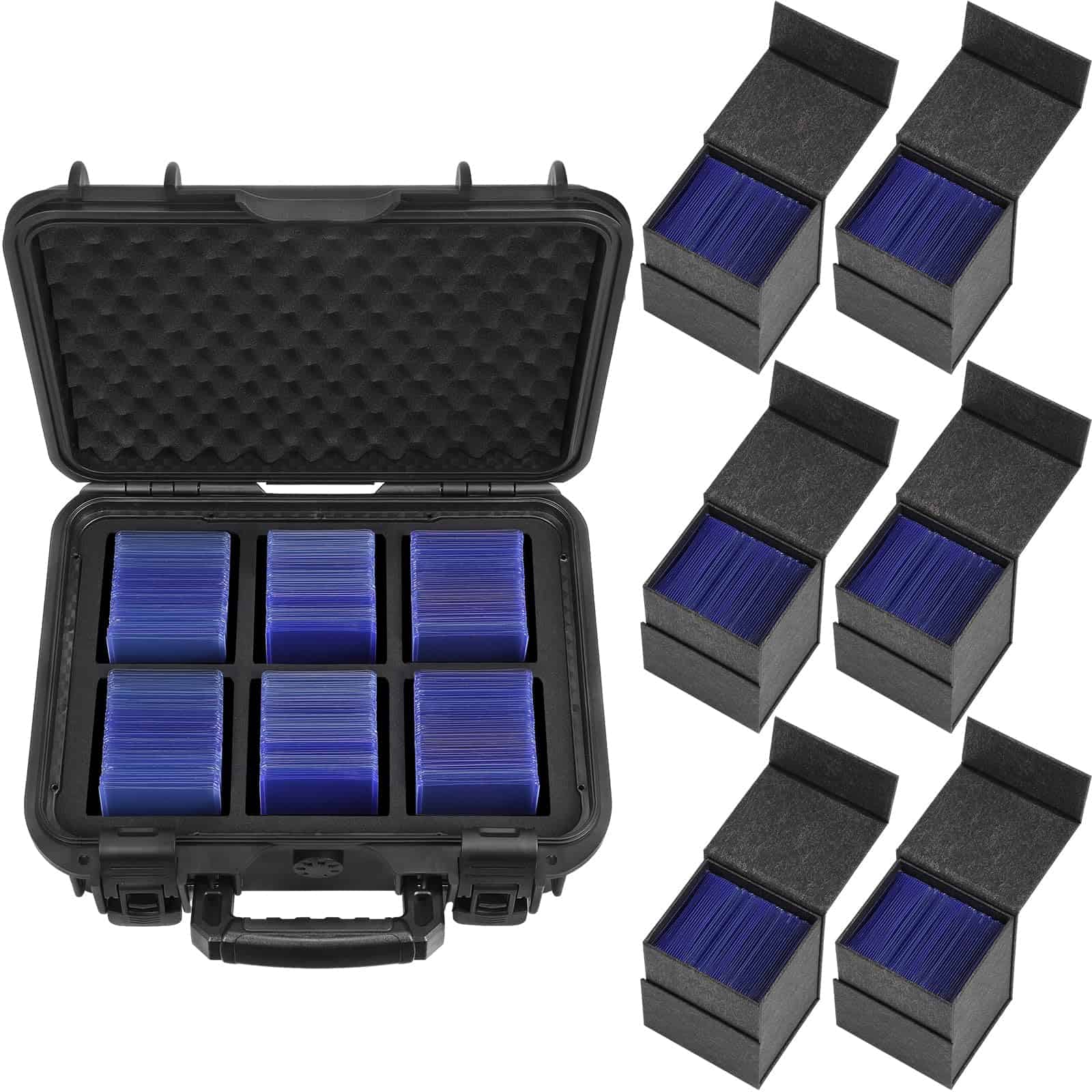 1. CAPACIDAD AMPLIA: El set de estuches para almacenar tarjetas incluye 1 x Caja impermeable y 6 x estuches de cartón. Pueden contener hasta 660 toploaders 3» x 4» de 35PT en total, o alrededor de 144 soportes de tarjetas de un toque de 35PT en total.