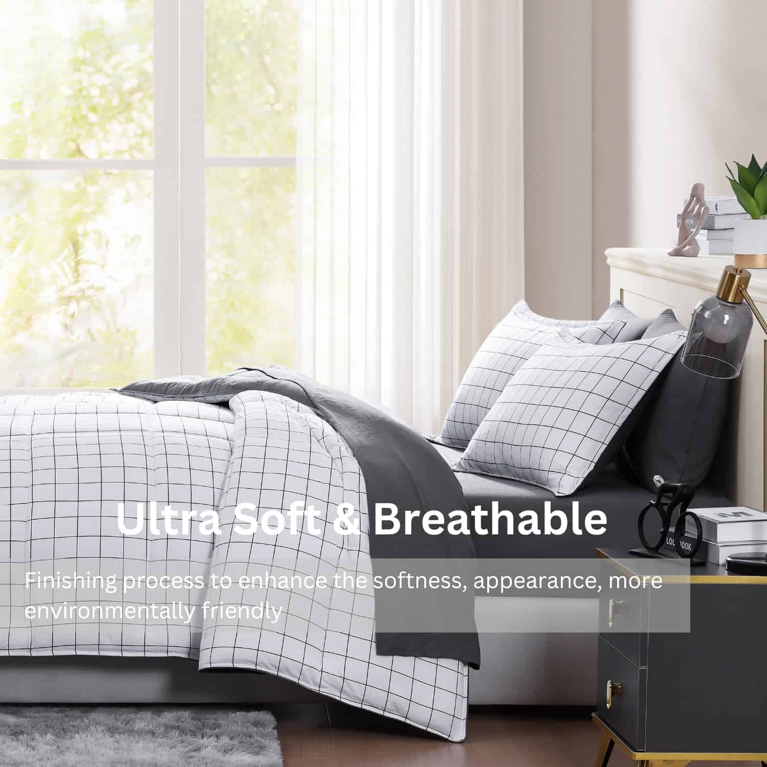 No tienes que comprometer el gran estilo con este conjunto de 7 piezas de Juego de Comforter Pre-Lavado Suave y Acogedor de Casa Platino. Este conjunto convenientemente empaquetado es perfecto para equipar tu dormitorio, traerá una sensación acogedora y lavada y se ajustará a cualquier estilo de dormitorio. Este cómodo Set de Cama incluye un Comforter, Sábana plana, Sábana ajustable, Fundas de almohada y Fundas de almohada.