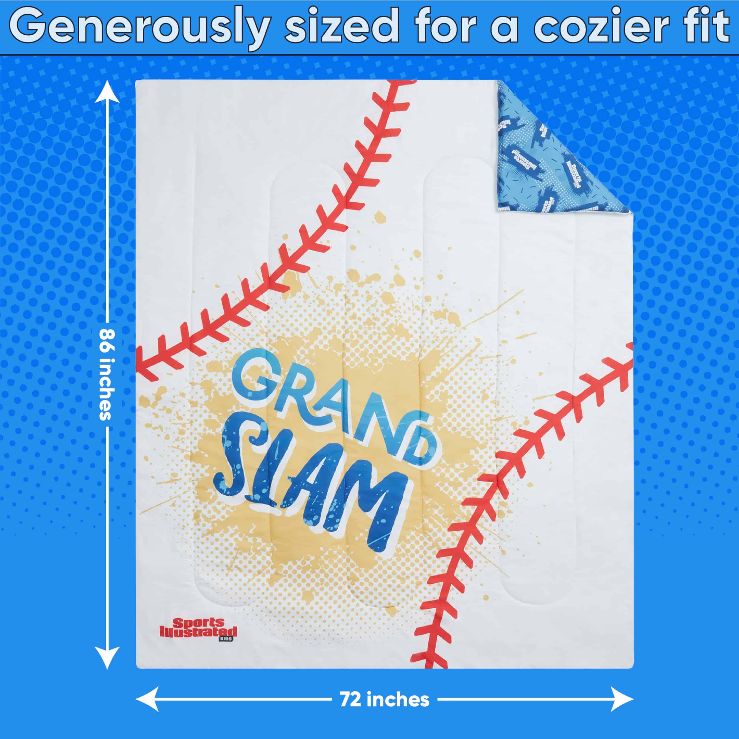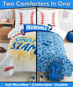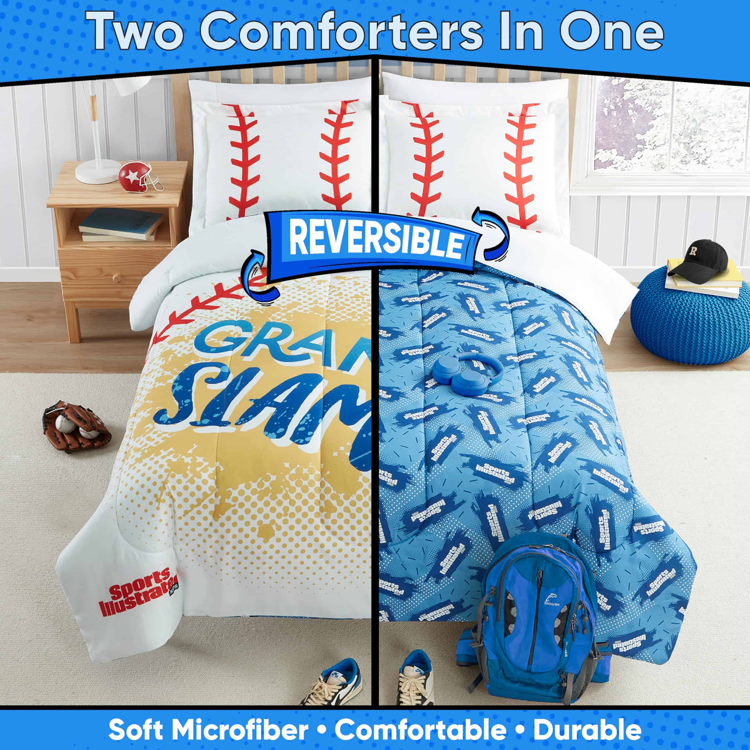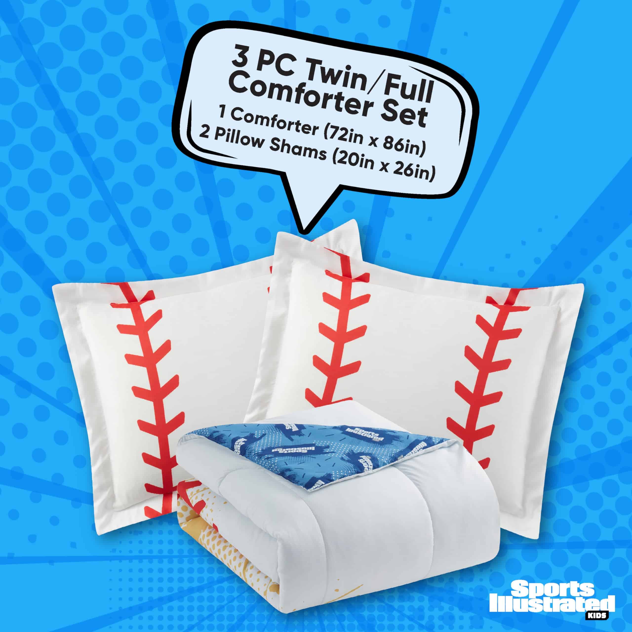 Sports Illustrated Kids, establecido en 1989, es una propiedad de legado de larga data que ha sido reavivada para los niños de hoy, proporcionando un punto de entrada para los niños en el mundo del deporte y los juegos, transmitiendo un mensaje para ser activos, divertirse y descubrir tu mejor versión personal. ¡A todos los amantes del deporte! Añade algo de diversión a la habitación de tus hijos con este juego de cama reversible de 3 piezas. Hecho de 100% microfibra, este juego de edredón para niños está diseñado con un estampado de salpicaduras de pintura con marca de Sports Illustrated en un lado y un estampado de múltiples deportes en el lado reverso para que obtengas dos looks súper geniales en uno. El tamaño individual/matrimonial es un conjunto de 3 piezas que incluye dos fundas a juego. El estampado llamativo es perfecto para verdaderos fanáticos del juego. Este juego de ropa de cama es súper suave y acogedor para que tus pequeños tengan una noche de descanso.