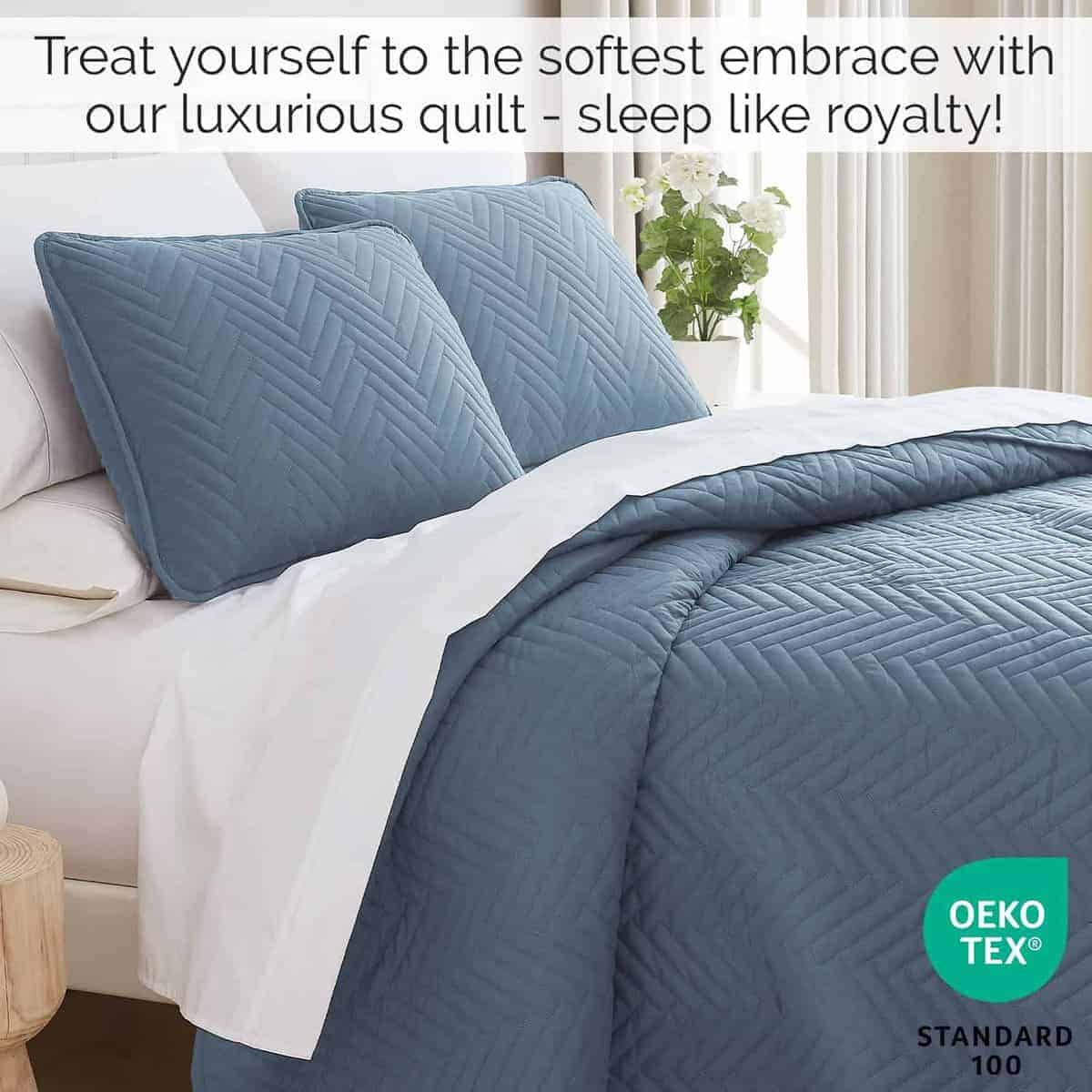 1. ¿Buscas actualizar tu dormitorio con un juego de cama de acolchado de calidad sin gastar mucho dinero? Nuestros sets de acolchado extragrande son la solución. Estos juegos de cama ligeros son de alta calidad, fabricados con tela prelavada para mayor suavidad, bellamente bordados y vienen con fundas a juego. Estos sets de acolchado están hechos con nuestra característica tela suave de microfibra que es ligera, de doble cepillado para mayor suavidad, libre de contracción, resistente a la decoloración. 2. El set de cama Full/Queen es un juego de 3 piezas y contiene un acolchado de 98 pulgadas de ancho x 98 pulgadas de largo y dos fundas acolchadas de 20 pulgadas de ancho x 26 pulgadas de largo. Tanto los acolchados como las fundas están acolchados en ambos lados. Las fundas tienen un cierre tipo sobre y ocultan completamente tus almohadas. Estos sets de acolchado extragrandes están hechos con tela prelavada extra suave. Este proceso hace que la tela sea significativamente más suave y le da un aspecto ligeramente vintage. 3. Calidad de fabricación de alta calidad y tela suave característica: tejido con hilos de microfibra suave de doble cepillado, este juego de cama de acolchado seguirá suavizando con cada lavado. Este set de acolchado tiene puntadas bordadas resistentes. Hay muchas formas en las que se pueden utilizar estos sets de acolchado. Puedes ponerlo en capas para agregar profundidad, o simplemente usarlo de forma independiente. Perfecto para cualquier tipo de decoración, ya sea ropa de cama de estilo campero, estilo boho o decoración moderna, este cubrecama king extragrande transformará instantáneamente tu dormitorio. 4. Multiusos y versátil: estos juegos de cama ligeros extragrandes se pueden utilizar por sí mismos o en capas con otras ropas de cama. Estos sets de cama y cubrecamas rey y cal king size se pueden utilizar en cualquier tipo de decoración. Puedes fácilmente usarlos en un entorno de loft urbano chic, ropa de cama campera, decoración de estilo francés rural, estilo de cama bohemio o en una configuración minimalista simple. Viene en una caja sellada al vacío. 5. Estos sets de cama de acolchado son resistentes a las arrugas, a la decoloración y al pillaje. Estos juegos de cubrecama son de alta calidad y están fabricados con nuestra suave tela de microfibra de doble cepillado de lujo, proporcionando una suavidad y suavidad sustancialmente mayores. Son lavables a máquina y seguirán suavizándose con cada lavado.