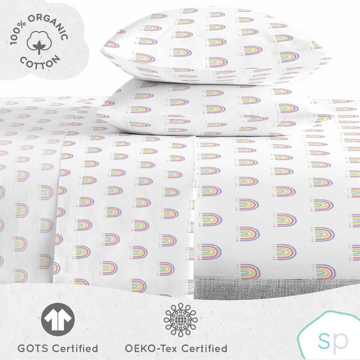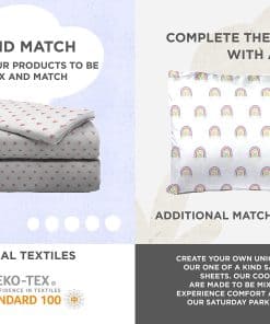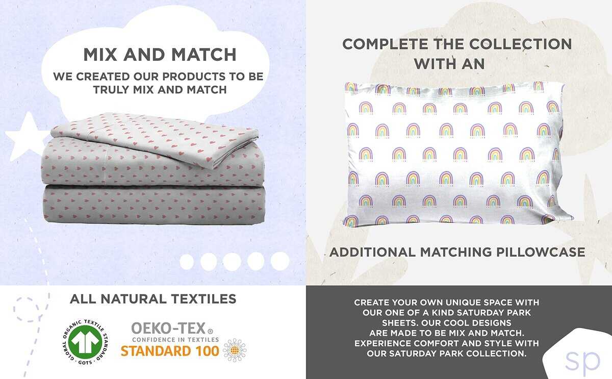 1. AJUSTE PERFECTO Y DISEÑO ELEVADO – El set de cama de reina incluye (1) cubierta de edredón de 88 x 88 pulgadas, (1) sábana ajustable de 60 x 80 pulgadas, (1) sábana plana de 94 x 104 pulgadas, (2) fundas de almohada estándar de 20 x 30 pulgadas y (2) fundas de almohada de 20 x 26 pulgadas. Añade un toque de encanto decorativo a tu habitación con nuestro elegante y suave set de cama Saturday Park, que presenta hermosos arcoíris y soles. 2. ALTA CALIDAD Y FÁCIL CUIDADO – ¡Mantén a tu pequeño tan acogedor como sea posible! Nuestra tela transpirable es muy suave y perfecta para todas las estaciones. Hecho con 100% algodón orgánico y resistente a la decoloración, permitiendo un sueño confortable. Para limpiar, lavar a máquina en frío. Para secar, secar al aire/en secadora a baja temperatura. 3. ORGÁNICO Y SOSTENIBLE – Algodón 100% orgánico certificado GOTS. GOTS (Estándar Textil Orgánico Global) es el estándar de procesamiento textil líder en todo el mundo para fibras orgánicas, que incluye criterios ecológicos y sociales, respaldado por la certificación independiente de toda la cadena de suministro textil. Una elección de regalo ambientalmente amigable perfecta para todas tus ocasiones especiales. 4. COMPRA LA COLECCIÓN SATURDAY PARK – Completa tu dormitorio con nuestros otros productos Saturday Park – Ropa de cama y accesorios coordinados disponibles (se venden por separado). 5. ACERCA DE LA MARCA – Aquí en Saturday Park, estamos comprometidos con la vida ecológica y sostenible, y nos encanta ayudar a nuestros clientes a crear un espacio que sea verdaderamente único. Nuestros productos de excelente calidad y no tóxicos están hechos para mezclar y combinar realmente para satisfacer todas las preferencias de estilo de los niños. ¡Así que adelante, combina cualquier colección juntas y seguramente se verá increíble!