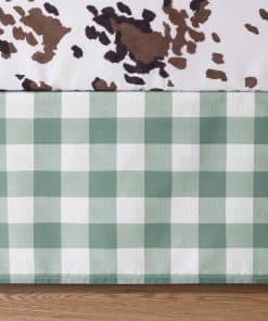 Agrega un toque de estilo único y acogedor a la habitación de tu bebé con este encantador set de ropa de cama para cuna de The Peanutshell. Con un tema boho de granja que presenta impresiones de vacas y patchwork en verde bosque y blanco, esta colección traerá un ambiente juguetón y suave a la guardería. El set incluye una colcha bellamente diseñada, una sábana ajustable para cuna y una falda para cama a juego, ofreciendo una apariencia elegante y coordinada para tu pequeño. La sábana ajustable está diseñada para adaptarse a colchones estándar de cuna (28″ x 52″) con elástico en todo el contorno, asegurando un ajuste seguro y cómodo para dormir plácidamente. Hecho con telas suaves y de alta calidad, este set de cama para cuna es gentil con la piel de tu bebé, brindando una hora de acostarse tranquila con sábanas acogedoras y una cálida colcha para cuna. Además, todas las piezas son lavables a máquina, facilitando la limpieza y el mantenimiento. La tela de microfibra retiene su suavidad y colores vibrantes, asegurando que el set de cama se mantenga fresco y vibrante, lavado tras lavado. Disfruta de un dormitorio acogedor y elegante para tu pequeño con este set de cama para cuna de The Peanutshell.