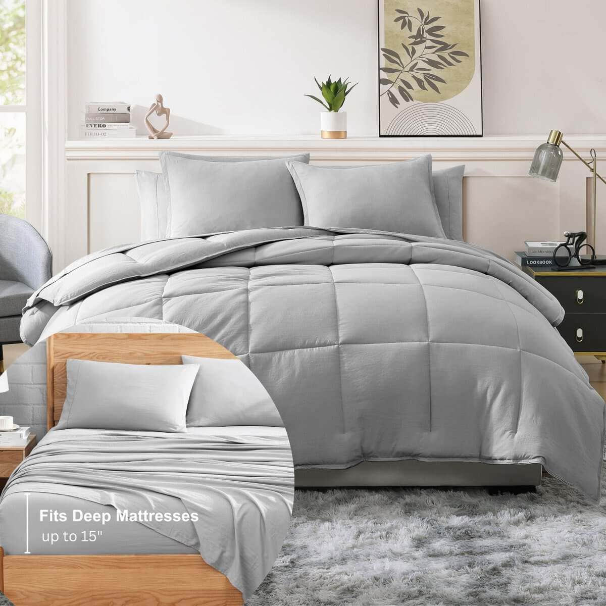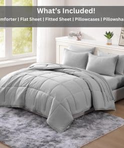 No es necesario comprometer el gran estilo con este Set de Edredón en una Bolsa de 7 Piezas Suave y Acogedor Pre-Lavado de Casa Platino. Este conjunto convenientemente empaquetado es perfecto para equipar tu dormitorio, traerá una sensación acogedora lavada y se adaptará a cualquier estilo de dormitorio. Este cómodo Set de Cama incluye un edredón, sábana plana, sábana ajustable, fundas de almohada y fundas de almohada.
