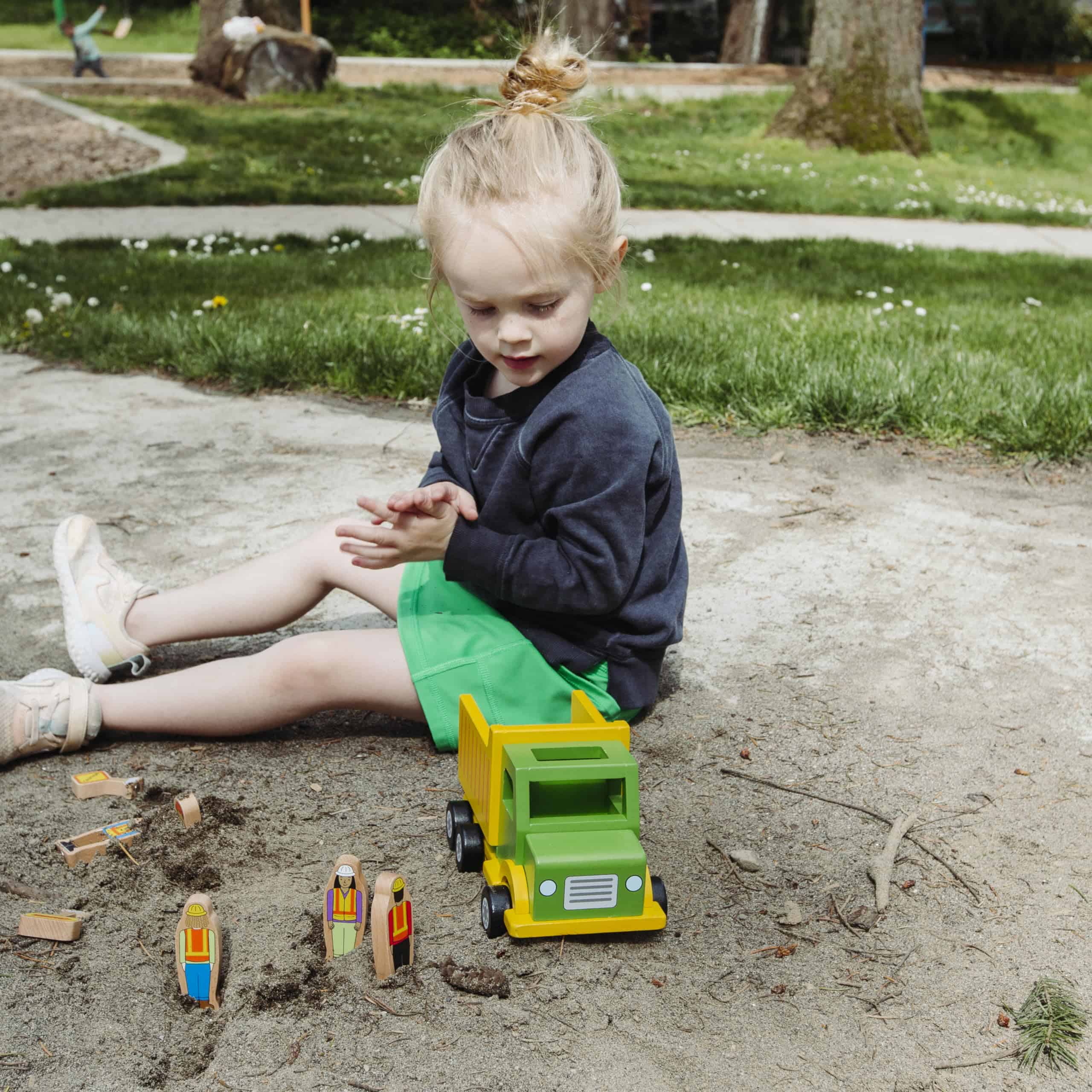 Nuestros trabajadores de construcción están en la carretera y necesitan tu ayuda trabajando en las vías. ¿Está tu hijo/a preparado/a para el desafío? Con una sólida construcción de madera que está hecha para durar, este resistente juguete resistirá las caídas, lanzamientos, mordidas, etc., que vienen con los niños pequeños. Está bellamente construido con personajes animales brillantes que son fáciles de agarrar, y las piezas coloridas promueven el reconocimiento del color e identidad. Deja que las imaginaciones se desborden mientras tu hijo/a recrea escenas de construcción en la vida cotidiana. Llamarán al equipo para conducir el camión mientras los trabajadores y su compañero peludo dan un paseo en la caja del camión por los caminos pedregosos y a través de los campos. En Jack Rabbit Creations, trabajamos duro para traerte juguetes y regalos de calidad heredable que adultos y niños aman. Nuestros productos son giros actualizados de clásicos, con arte original y un increíble embalaje. Preferimos utilizar madera, hojalata, algodón y otros materiales naturales para nuestros diseños, favoreciendo un enfoque de ‘no requiere pilas’. Todos nuestros productos están diseñados por y hechos exclusivamente para Jack Rabbit Creations.