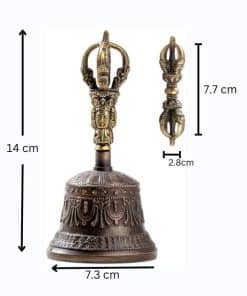 Fabricada con una variedad de materiales de alta calidad, como bronce, latón u otros metales preciosos, la Campana de Mano Bajra cuenta con un diseño único que refleja la sabiduría profunda del budismo. Su forma se asemeja a un rayo, simbolizando la naturaleza indestructible y poderosa de la iluminación.