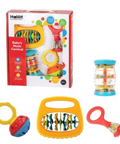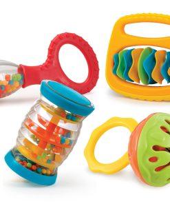 Cuatro instrumentos brillantes y coloridos que ayudan a los bebés a lograr nuevas habilidades visuales y auditivas. Estas cuatro piezas ofrecen una amplia variedad de sonidos, colores y diversión musical. Pueden ser utilizados solos o con padres, amigos y hermanos. Viene en colores surtidos.