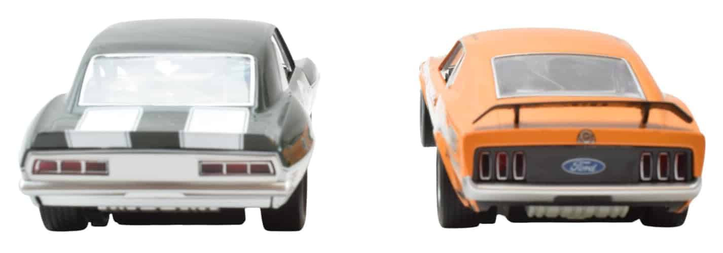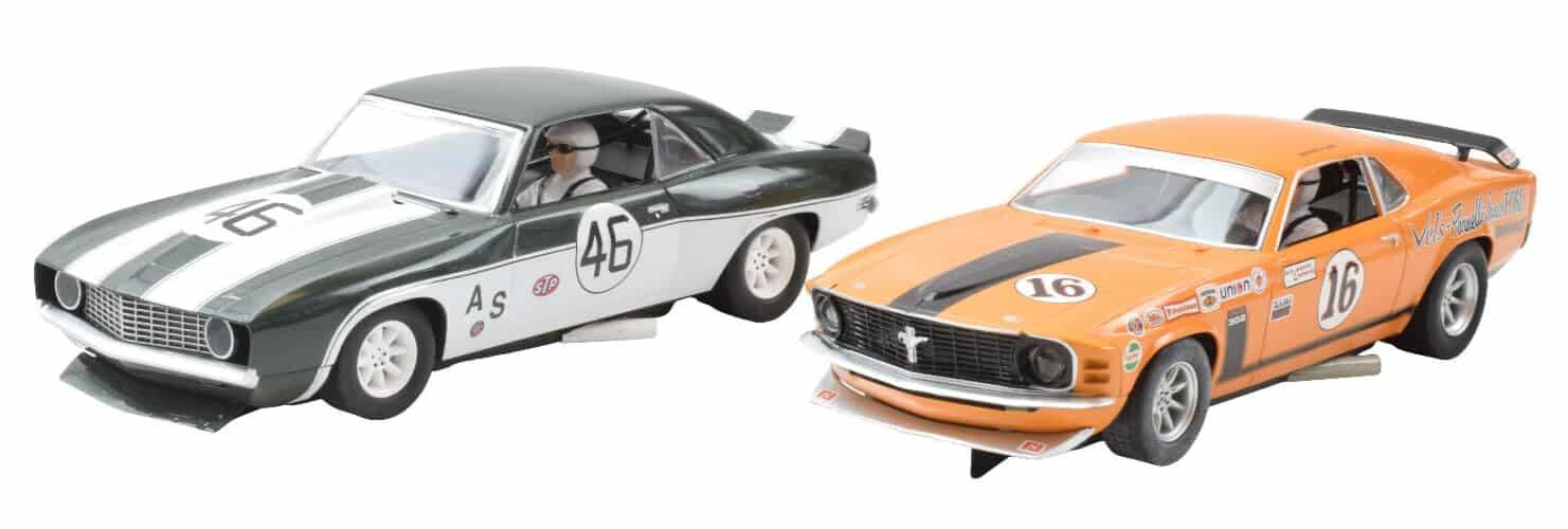 Set de Carreras de Autos Slot Mustang vs Camaro a Escala