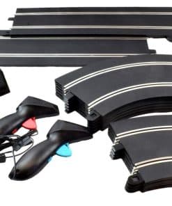Set personalizado para Premium Hobbies que incluye todo lo necesario para comenzar a correr. La pista completa tiene 15′ 11″ de longitud y se puede configurar en un espacio de 4′ 3″ x 6′ 3″. Incluye un contador de vueltas para mayor competencia y características especiales como cambios fáciles de Pick-ups, magnatracción y autos detallados.