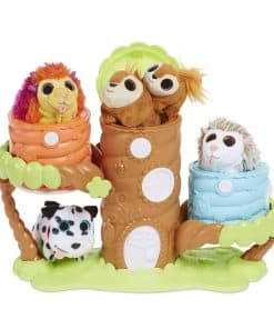 ¡La Casa Árbol de Sorpresa Springlings le brinda a los springlings un lugar bonito y saltarín para llamar su hogar! Hasta tres personajes de springlings pueden encajar dentro de la Casa Árbol de Sorpresa Springlings, luego salen disparados cuando los niños presionan el botón. Cuantos más springlings los niños coloquen dentro, más alto volarán cuando salgan. La Casa Árbol de Sorpresa Springlings viene con los personajes exclusivos de Ardilla Mamá y bebé, pero también es compatible con todos tus personajes de springlings favoritos. Puedes colocar las casas de tus springlings en las ramas de la Casa Árbol para añadir aún más diversión saltarina a tu set de juego. La Casa Árbol también sirve como una manera perfecta de almacenar y exhibir todos tus springlings.