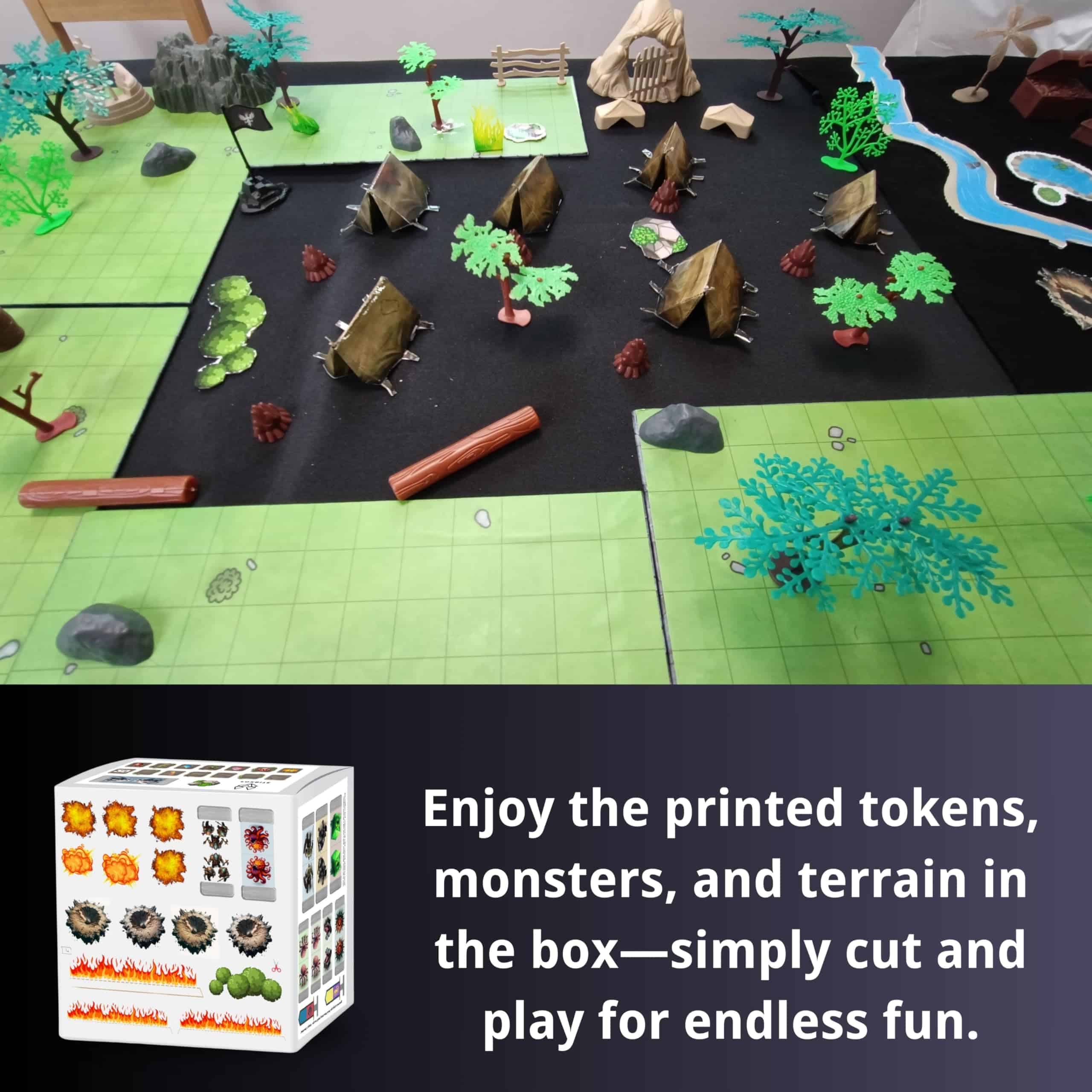 3. Mapa de Batalla de Doble Cara grueso y resistente: Planifica estrategias en un mapa de doble cara que presenta lados de hierba y baldosa para escenarios de juego sin fin.