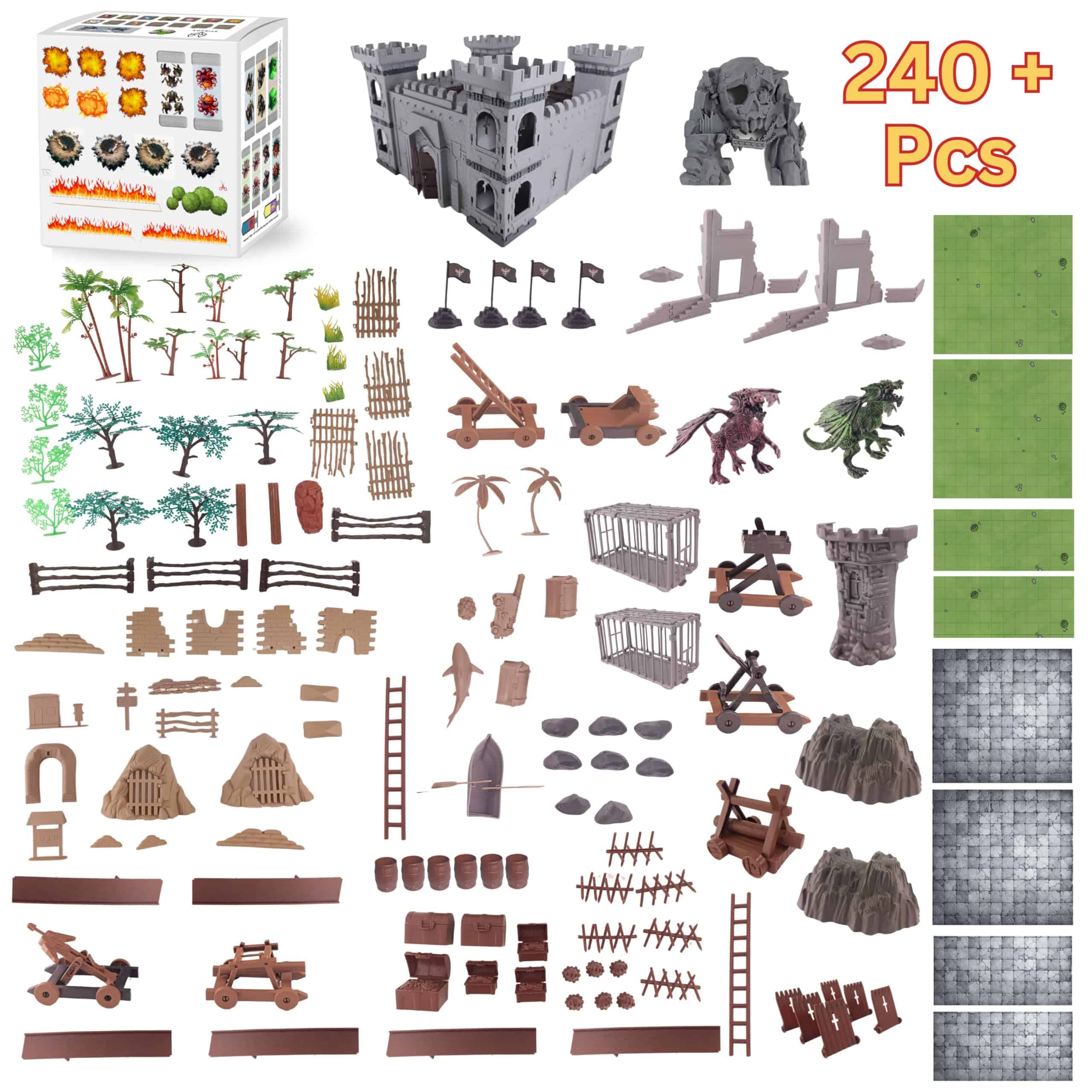 8. Set de castillo Dungeons and Dragons, accesorios de terreno DND, Castillo de juego de mesa, Modelo de miniatura, Accesorios, Terreno de fantasía RPG, Figuritas de dragón, Asedio, Mapa de batalla de doble cara, mapa de juego, Set de paisaje, Playset, Suministros de juego RPG, Escenografía de asedio de castillo, Terreno de juego, Juego de rol, Terreno de miniatura, Suministros de juego, Miniaturas de dragón, Terreno de mesa, Escenografía de mazmorra, Accesorios de mapa de batalla, Requisitos de juego, Paisaje de RPG, Accesorios de paisaje.