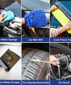 Este completo set de cepillos para detallado incluye todo lo necesario para mantener tu coche impecable tanto por dentro como por fuera. Incluye un set de 30 piezas para detallar el interior del coche, un cepillo para taladro para una limpieza eficiente, un cepillo para llantas de 18 pulgadas para que luzcan como nuevas, y mucho más. Ideal para limpiar el interior, exterior, parabrisas, alfombras, cuero y conductos de aire, este kit de cepillos para lavado de coche es imprescindible para cualquier amante de los coches que quiera mantener su vehículo en perfectas condiciones.