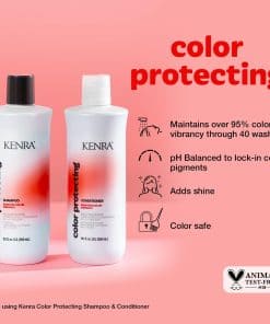 Preserva el color y deja el cabello vibrante, brillante y nutrido con el sistema Kenra Color Protecting. Mantiene más del 95% de la vibrancia del color durante 40 lavados. Limpia suavemente el cabello y brinda protección diaria del color con cada lavado. Seguro para uso diario de protección del color.